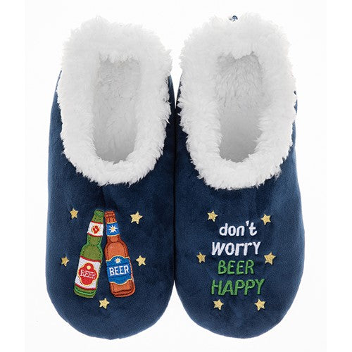 Style: Super warm, soft and fleecy fun mens slippers with a coordinating pairable design on each slipper.