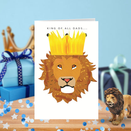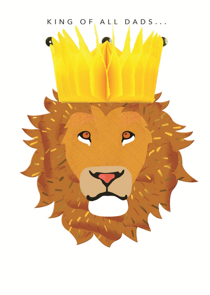 Details: A quality 3D honeycomb and foil embellished Father's Day greeting card featuring a lion wearing a crown by Second Nature from their Surprise range