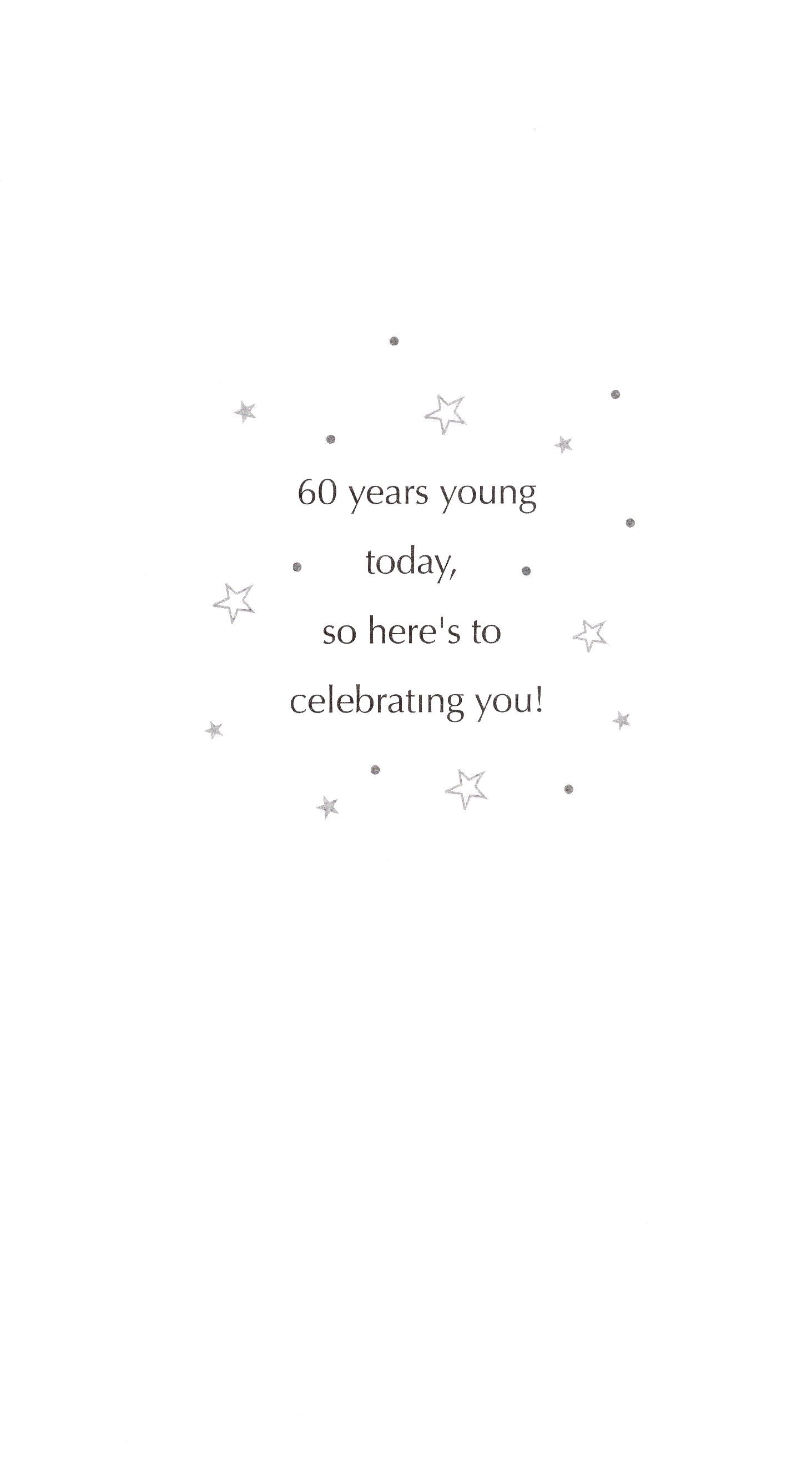 Message: 60 years young today, so here's to celebrating you!