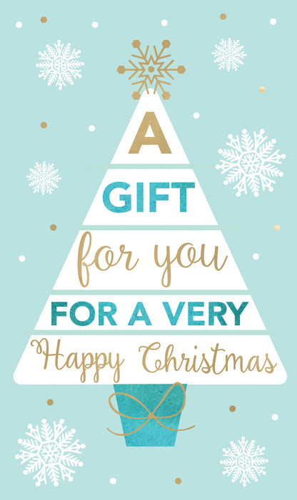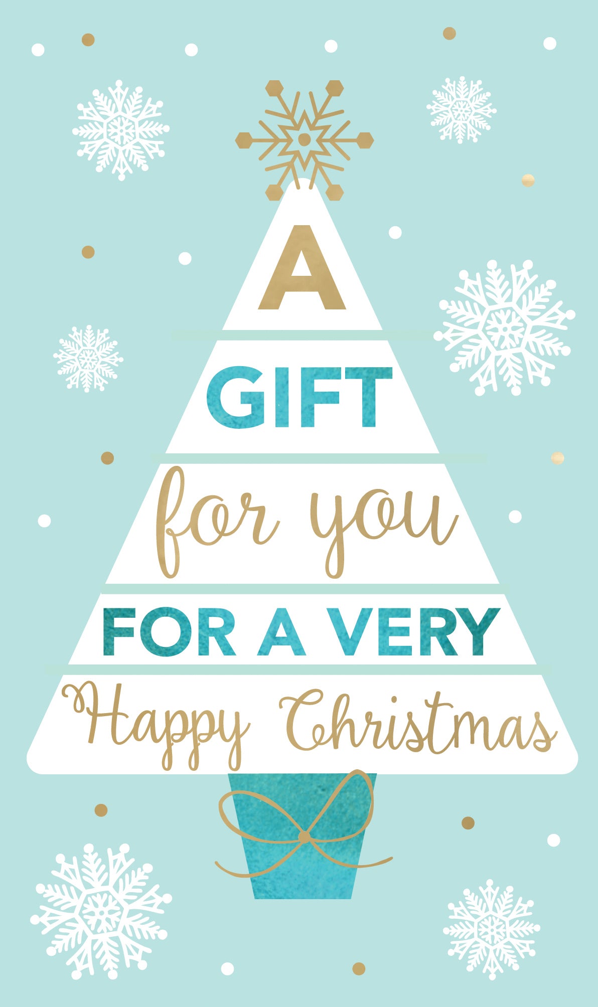 Details: A quality foil finished greeting gift card by Second Nature with space inside and special slots to hold money, the front features a fashionable Christmas tree