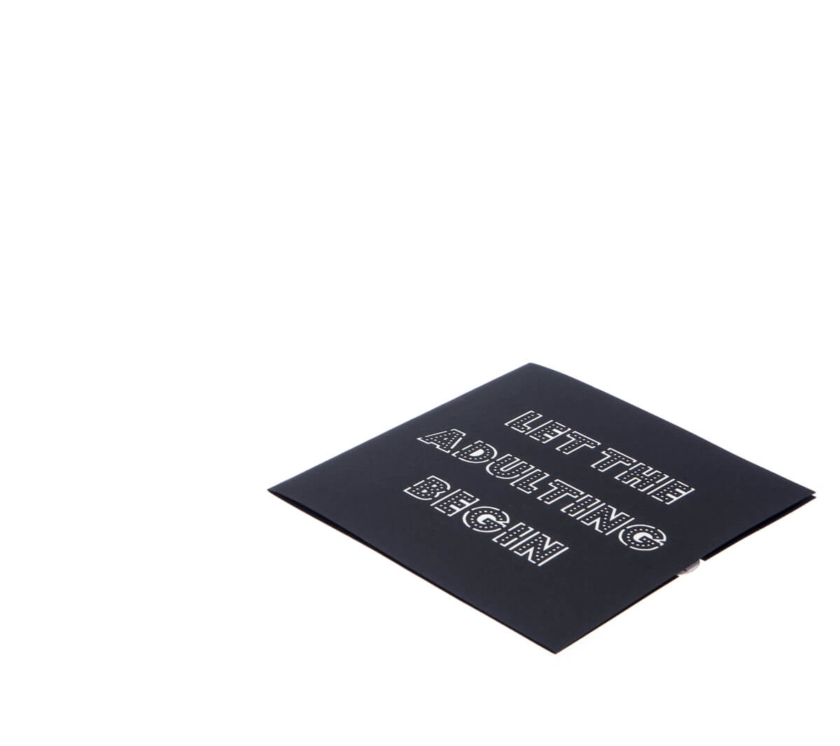 Details: It truly is what's inside that counts, each one of these Cardology 3D pop up cards hides a surprise intricate die-cut pop out inside. The Adulting Begin card features a delicate laser-cut 'LET THE ADULTING BEGIN' wording design on the front of the card and displays a hand-crafted magnificent and celebratory number 21 on the inside once opened. Each card comes flat with an envelope included Closed