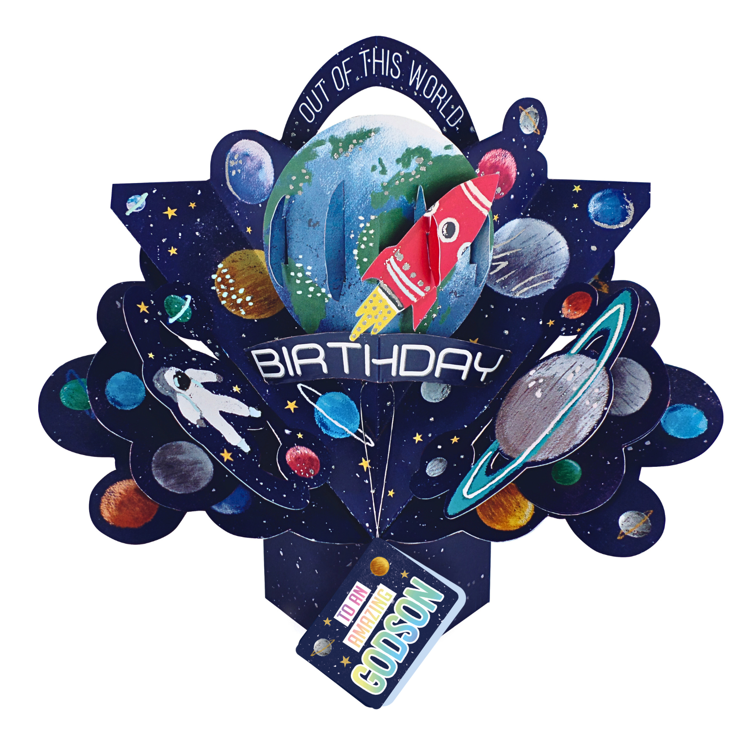 Why they'll love it: This special pop up space rocket birthday card for a Godson is quite simply the best in the universe and is sure to make any child's special day out of this world!