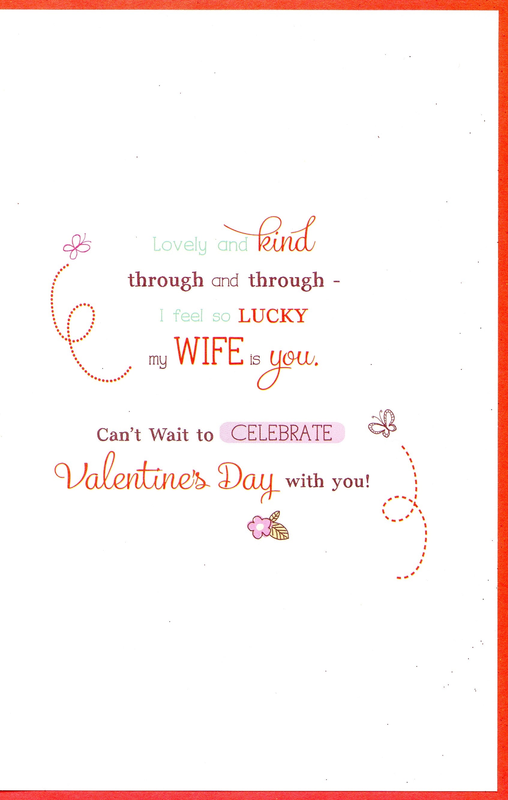 Message Inside: Lovely and kind through and through - I feel so lucky my wife is you. Can't wait to celebrate Valentine's Day with you!
