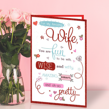 Treat your amazing wife to a glittering Valentine's Day card with a loving message that will make her feel appreciated and adored.