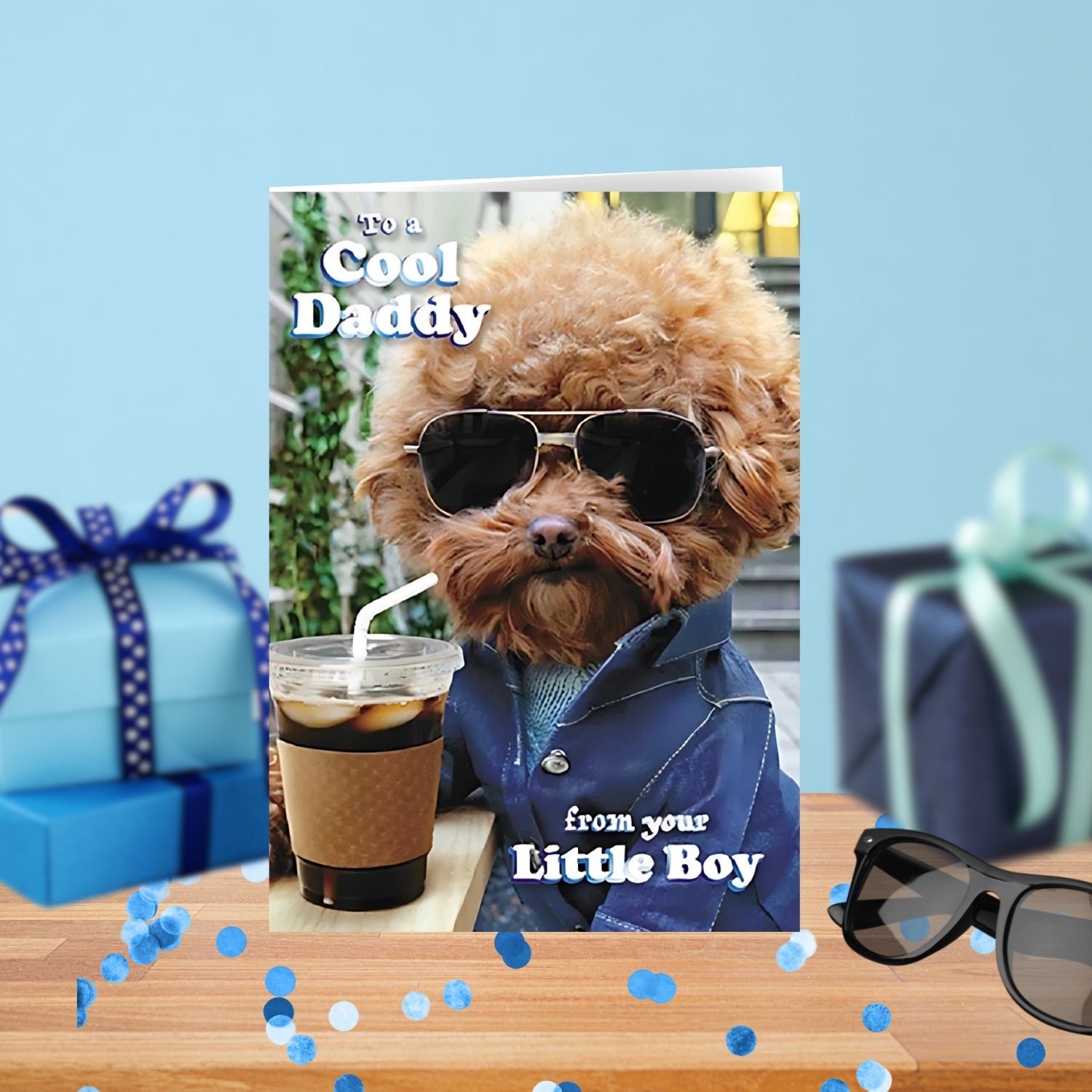 Details: A funny animal Father's Day greeting card featuring a cool cockapoo in sunglasses by the popular photographic humour range by Avanti