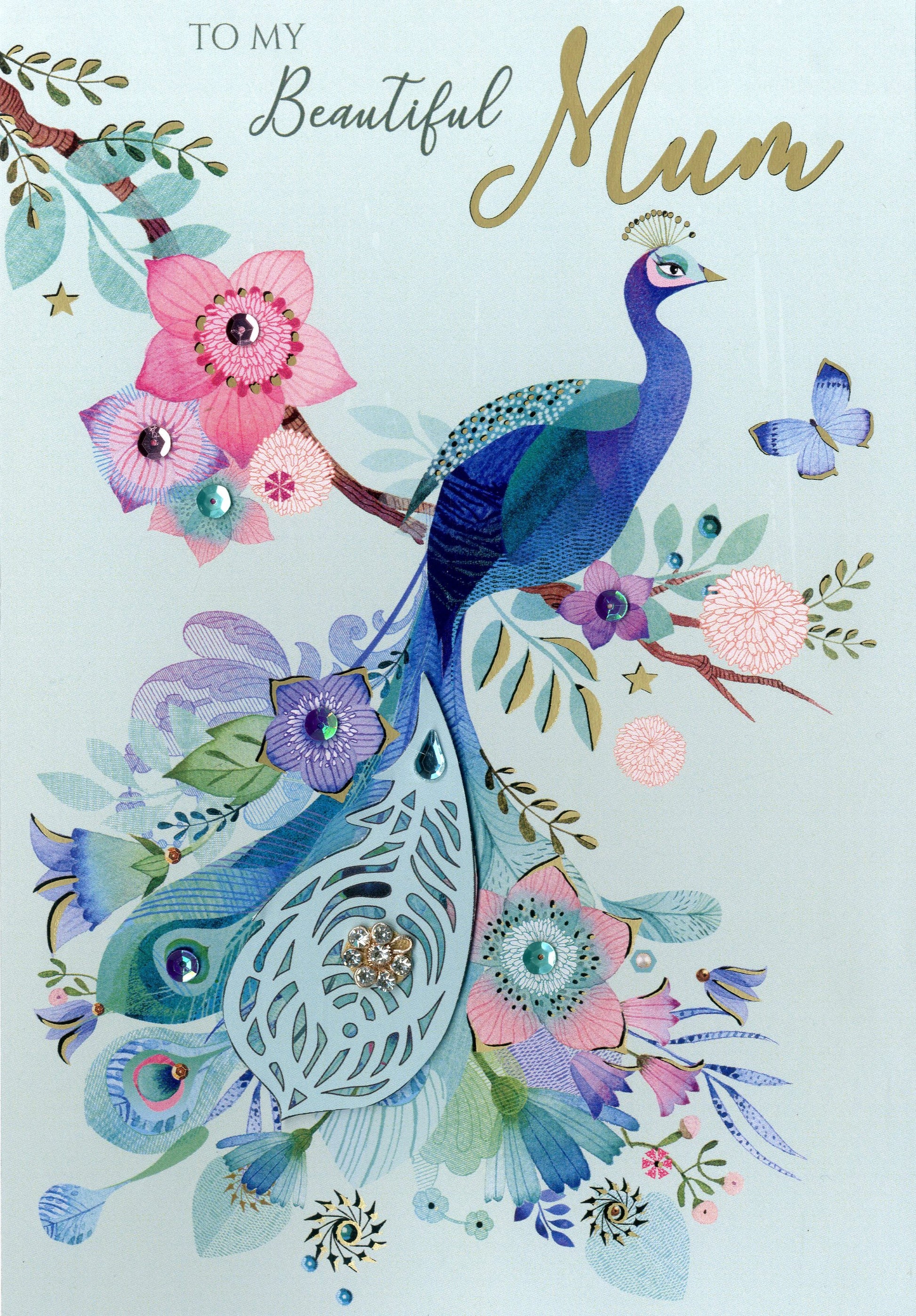Looking for greeting card ideas for her? Experience the joy in your mother's face as she's gifted with an exquisite, handcrafted card, adorned with the vibrant hues of a magnificent blue peacock. A truly unique way to show your appreciation and love that she'll treasure forever.