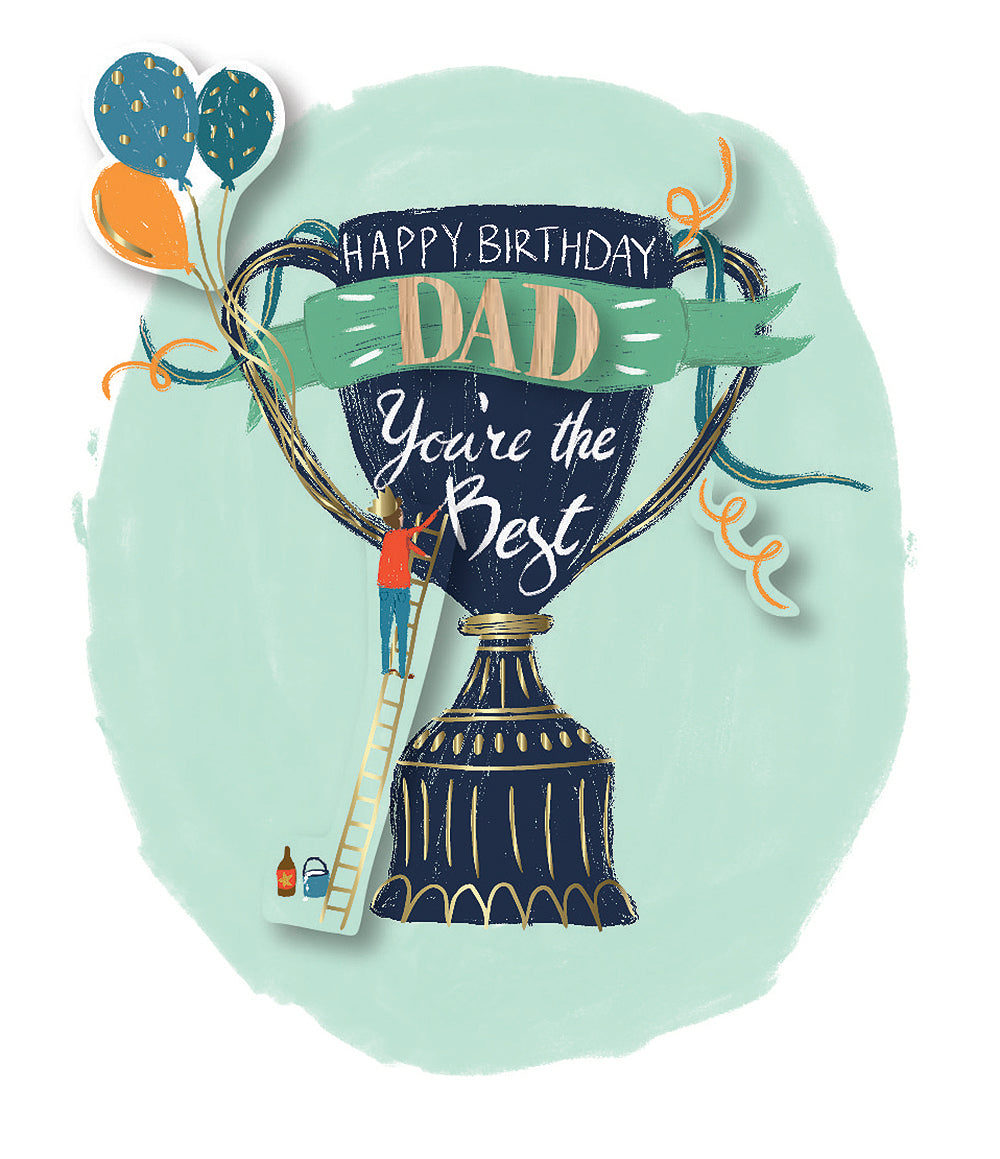 Searching for birthday ideas for a Dad? This brilliant card is perfect for a Dad who deserves the world. The giant trophy design is the perfect way to let her know that you're sending his lots of birthday wishes on his big day.