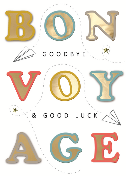 Bon Voyage Good Luck Embellished Good Luck Greeting Card