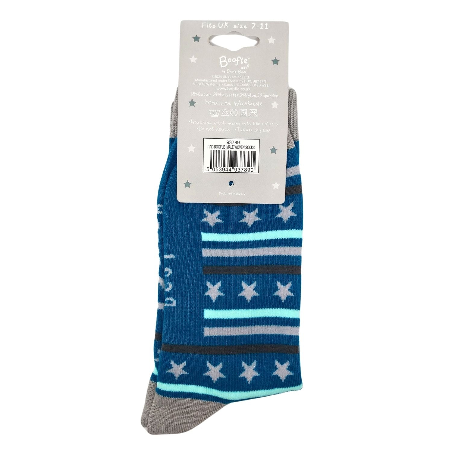 Details: This collectible Gift Set from the Boofle range is designed with a blue boofle gift box covered in stars for daddy, featuring the caption 'Mug: Dad you're the Best! Socks: Best Dad Ever xxx'. With its thoughtful design and heartfelt message, this gift set is sure to bring happiness to any special Dad.
