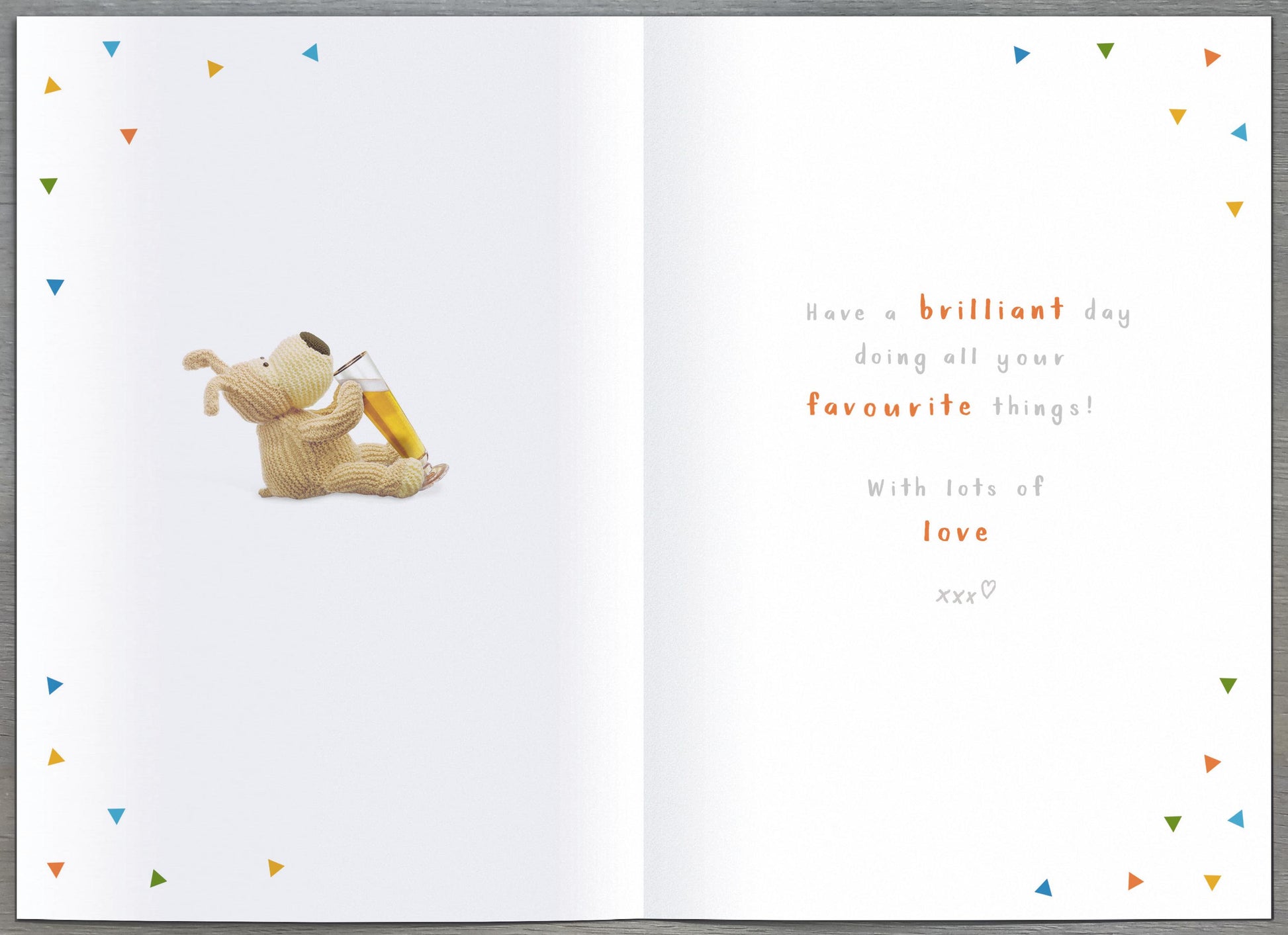 Looking for greeting card ideas for him? This adorable greeting card captures the essence of love and appreciation. With Boofle bear holding a pint of beer, it's perfect to surprise a special someone on Father's Day. Its heartfelt design speaks volumes, making it an exquisite collectible.