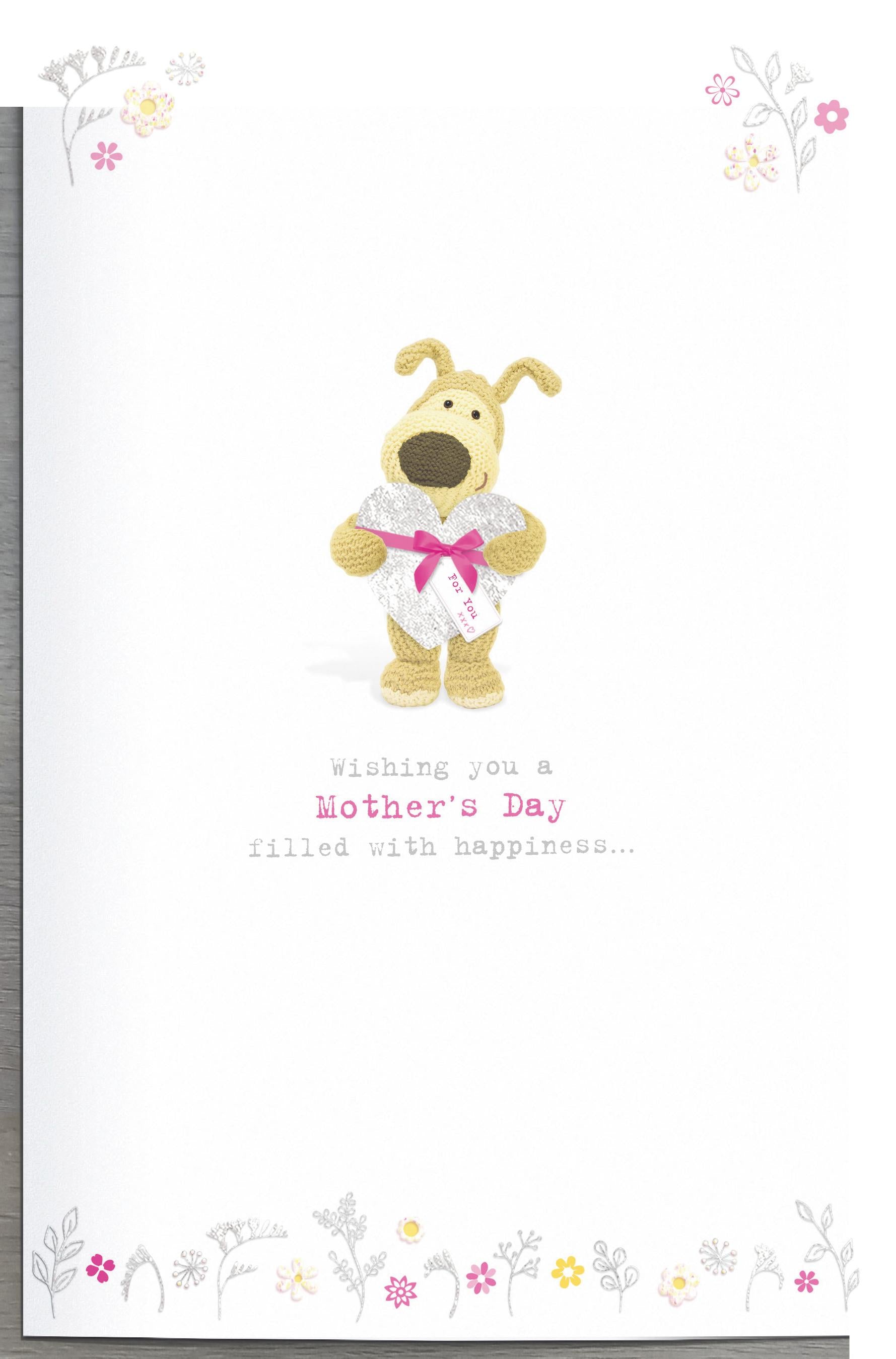 Details: A cute silver foil finished and embellished Mother's Day greeting card with pretty floral details from the very popular Boofle range of greeting cards