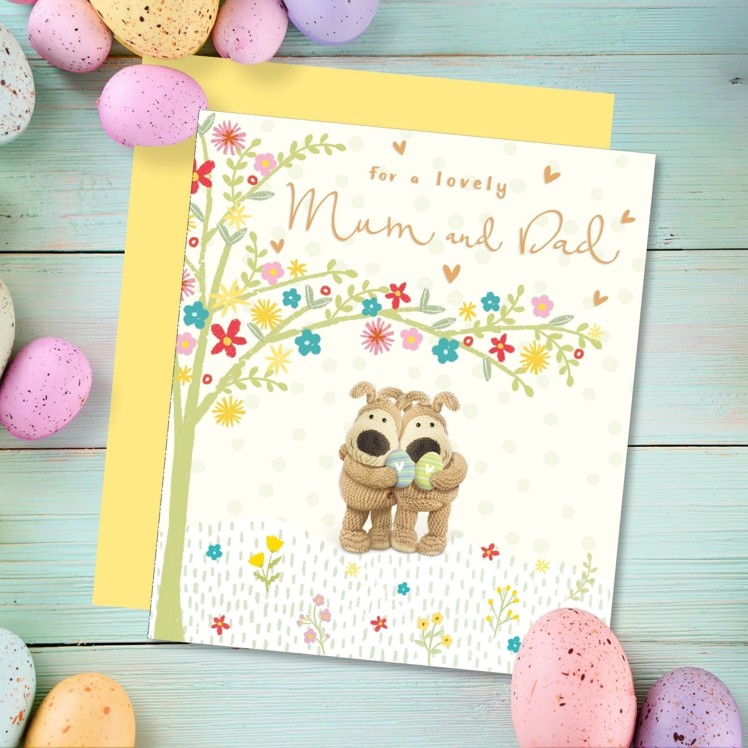 Details: This Easter card from Boofle's collection depicts a heartwarming image of parents holding Easter eggs with the loving message, "For a lovely Mum and Dad." It's a thoughtful and collectible greeting card that is sure to make any special parents feel cared for.