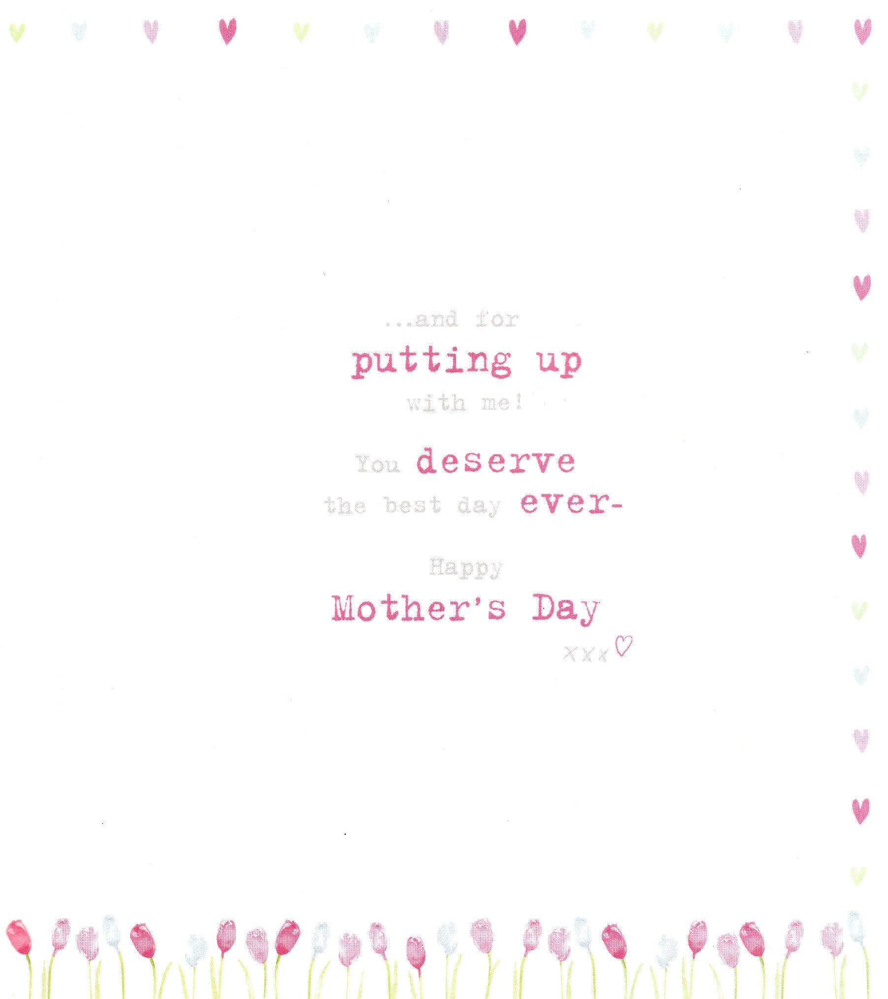 Message: ...and for putting up with me! You deserve the best day ever - Happy Mother's Day