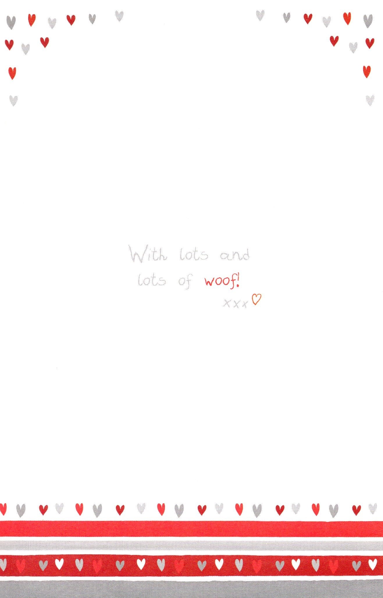 Details: A Popular Valentine's Day Greeting Card from the dog by our lovely Boofle range, it's glitter and gem finished, lined inside