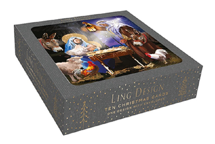 Box of 10 Around The Manger Gold Foiled Christmas Cards