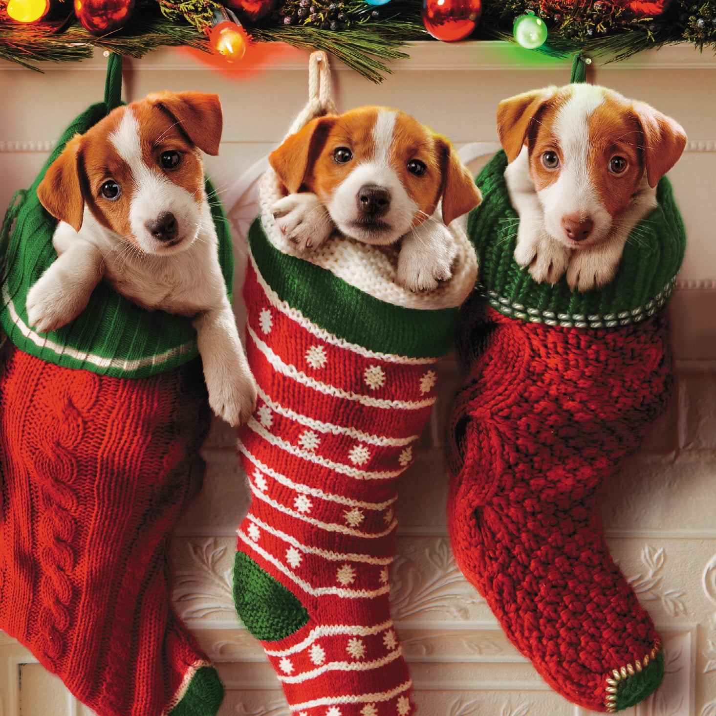 Details: A quality pack of 10 cute puppy Christmas cards in two designs.