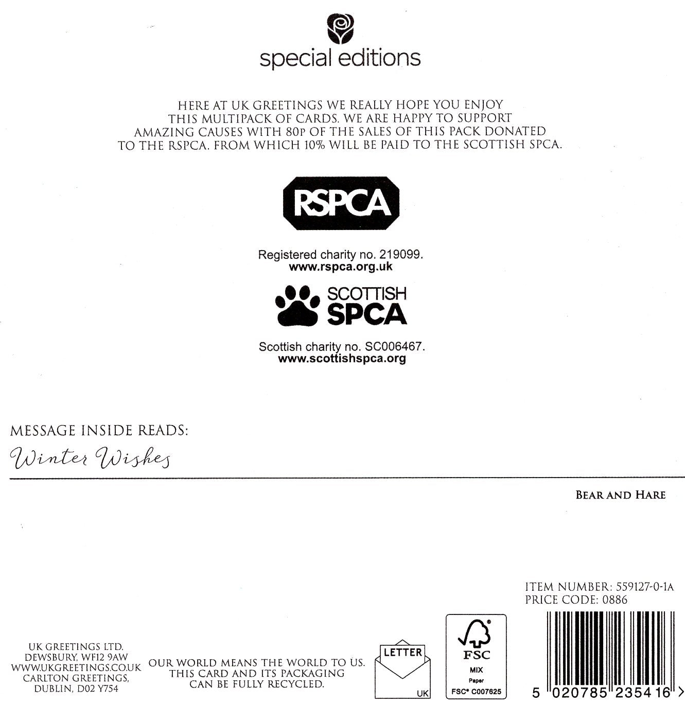 Details: This box of charitable Christmas cards features two designs of leaping hares and a family of brown bears walking under the moonlight. It is part of the thoughtfully designed charity range by Special Editions. For every box purchased, 80p will be donated directly to the RSPCA, helping to support their invaluable work.