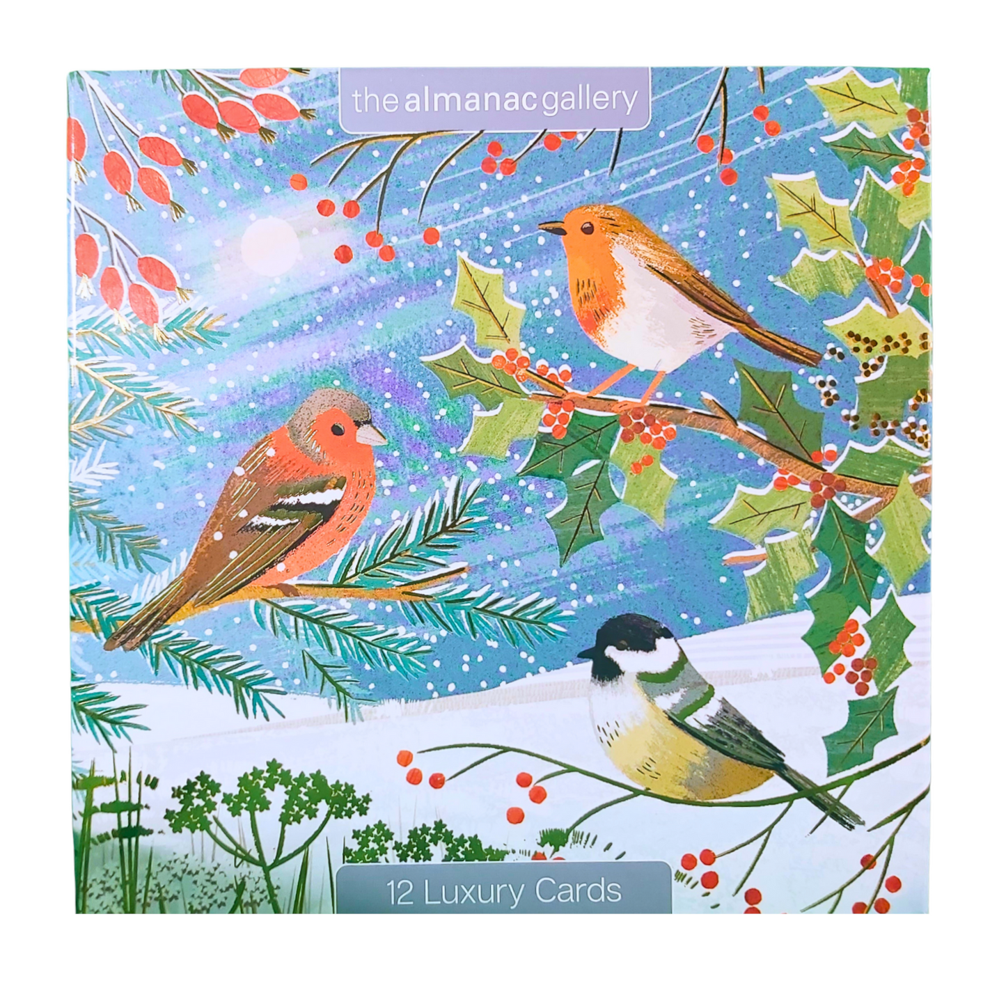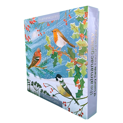 Details: Inside each box of Christmas cards are 12 luxury gold foiled cards in 3 designs featuring a selection of winter garden birds