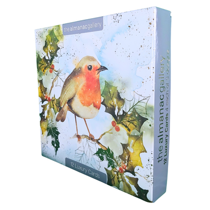 Details: Inside each box of Christmas cards are 12 luxury gold foiled cards in 3 designs featuring watercolour robins and hares