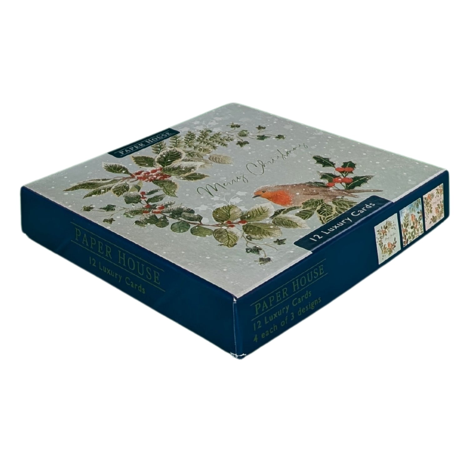 Box Of 12 Paper House Festive Xmas Robin Christmas Cards In 3 Designs