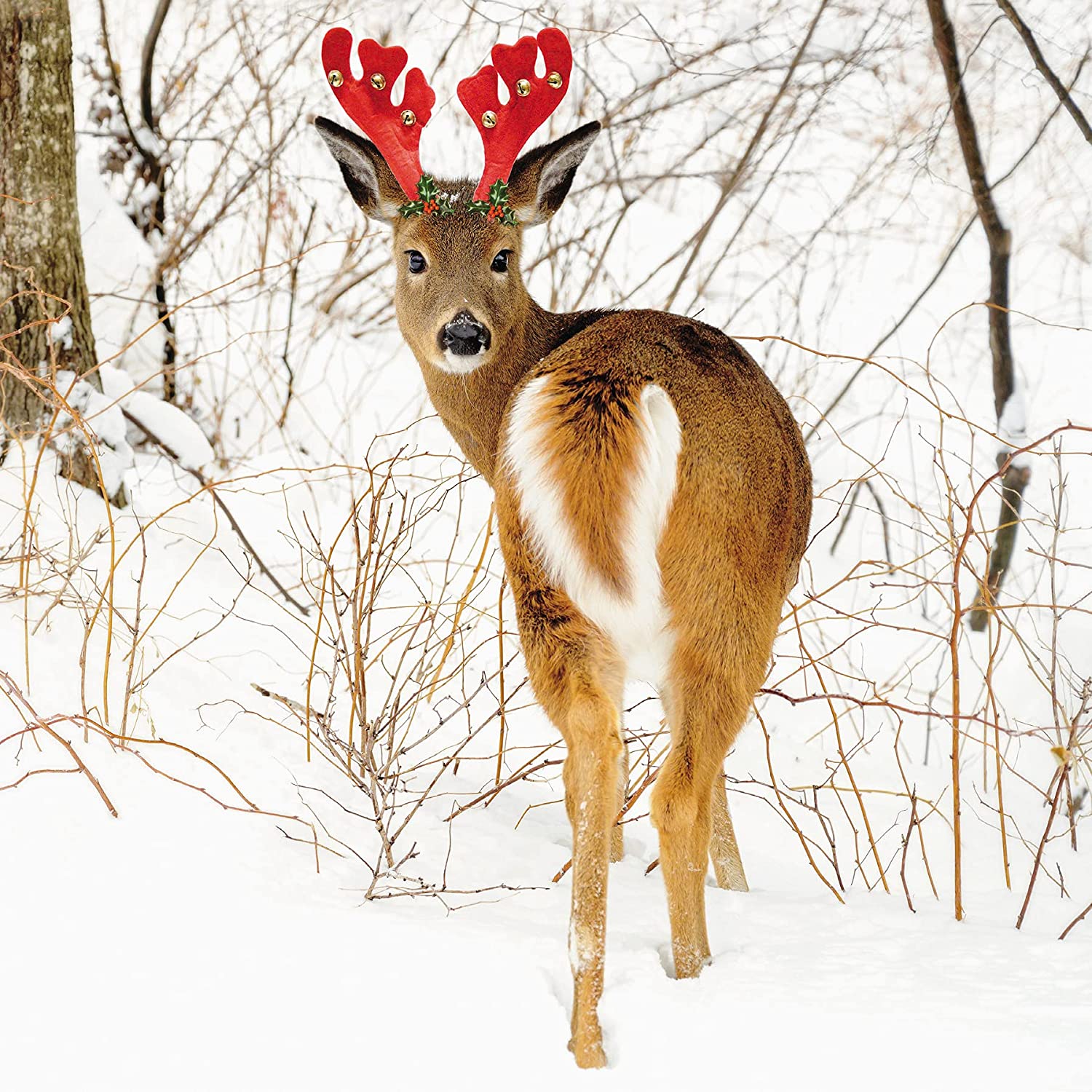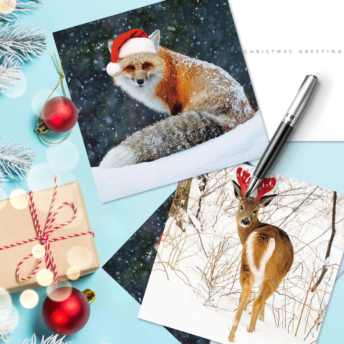 Box of 16 Snowy Deer & Fox Photographic Christmas Cards In 2 Designs