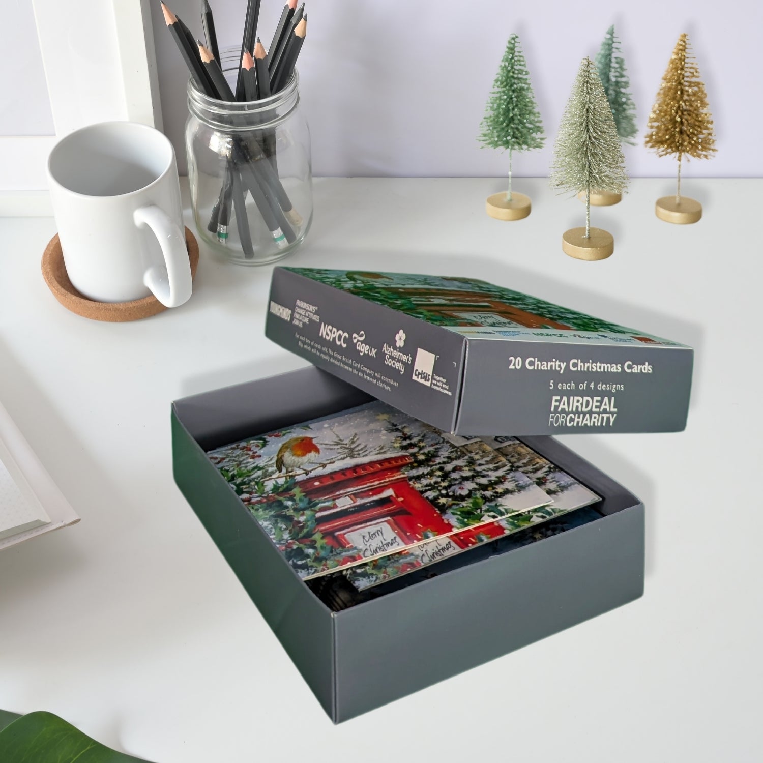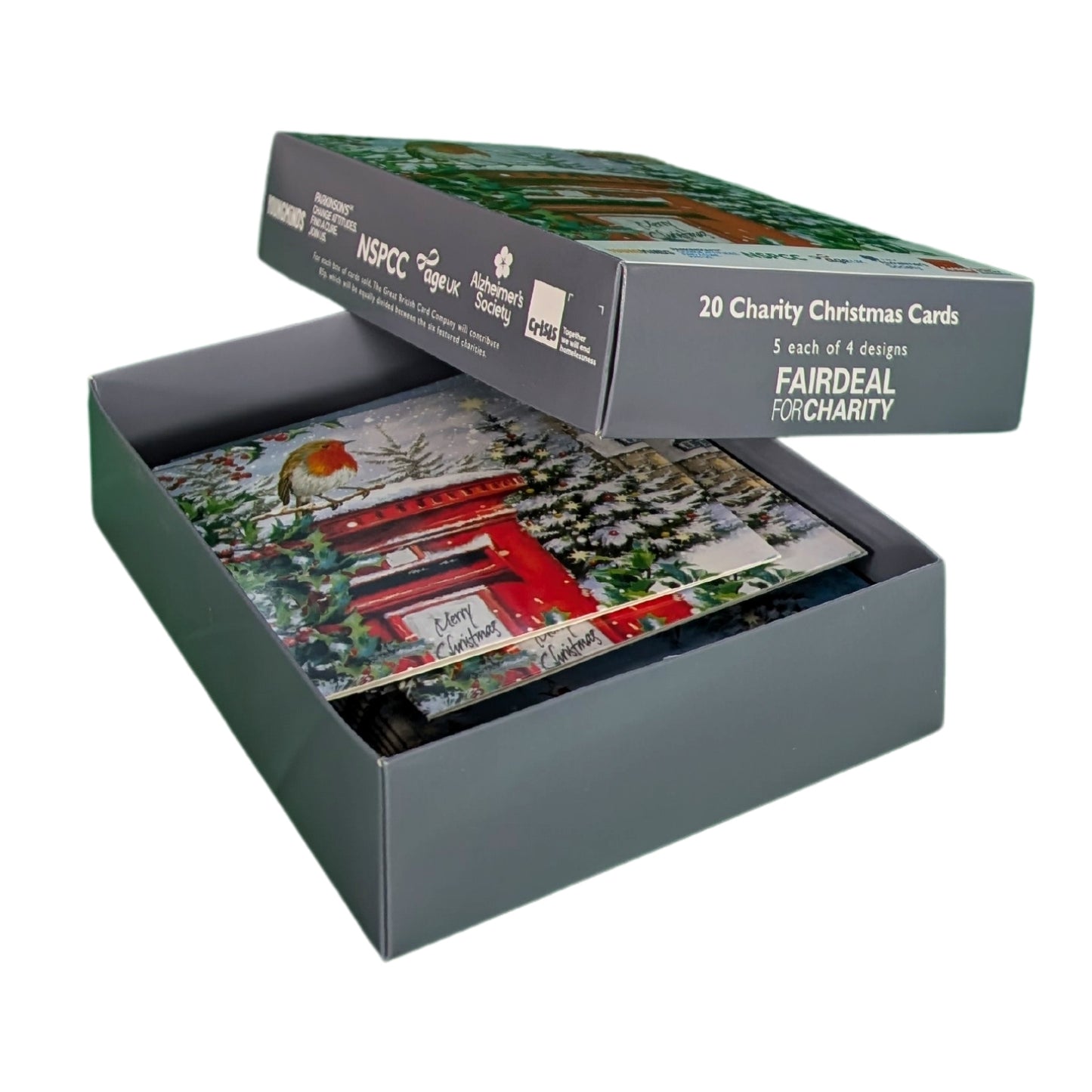 Good to know: Each box contains 20 cards in 4 designs complete with white envelopes, and made from sustainable and recyclable card. Each purchase includes a charity donation of 85p per pack divided equally between Youngminds, Parkinsons, NSPCC, Age UK, Alzheimer's Society and Crisis.