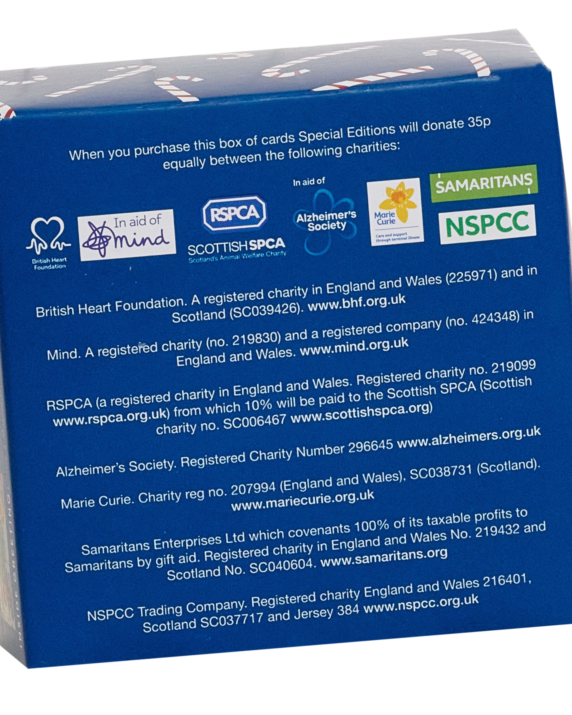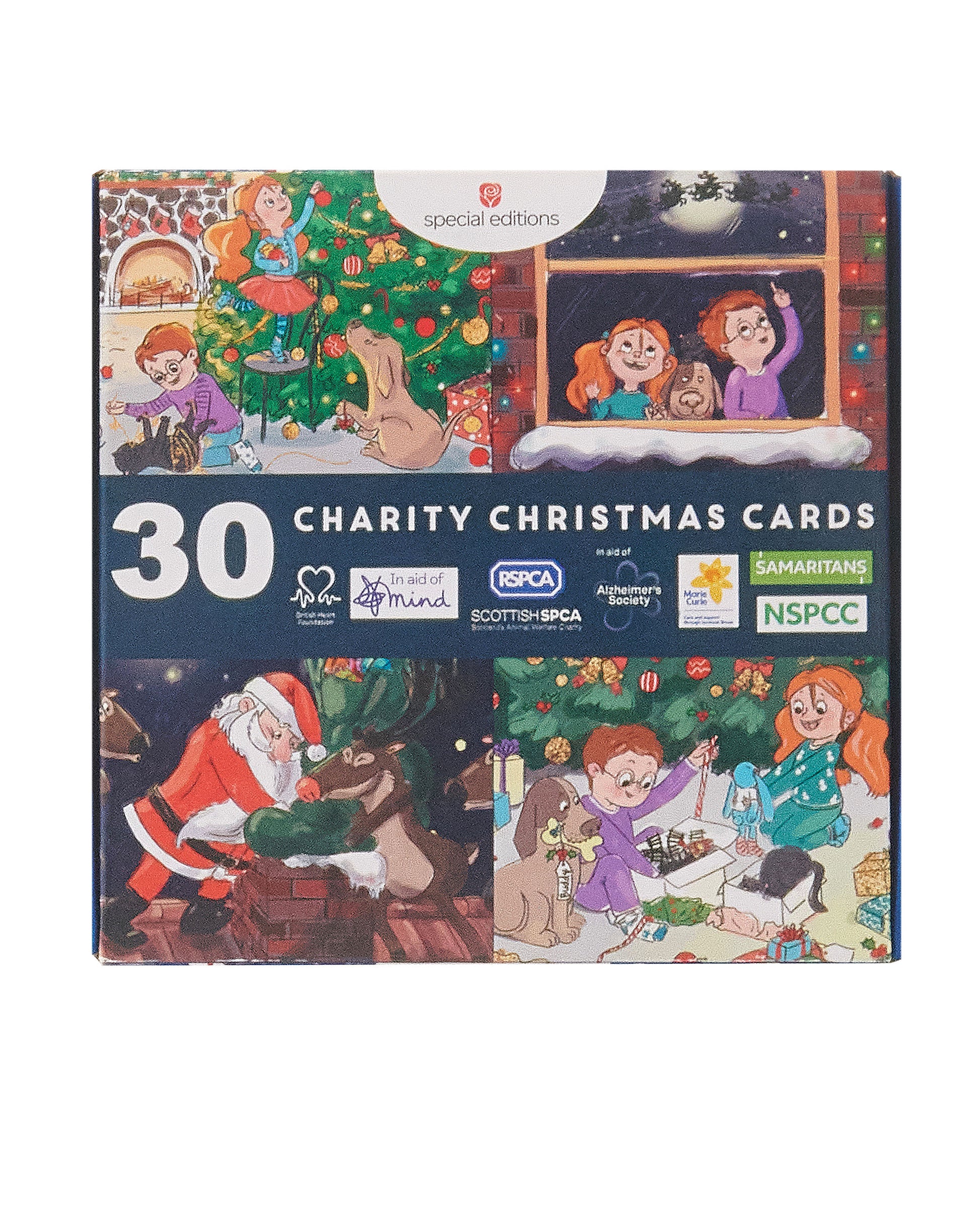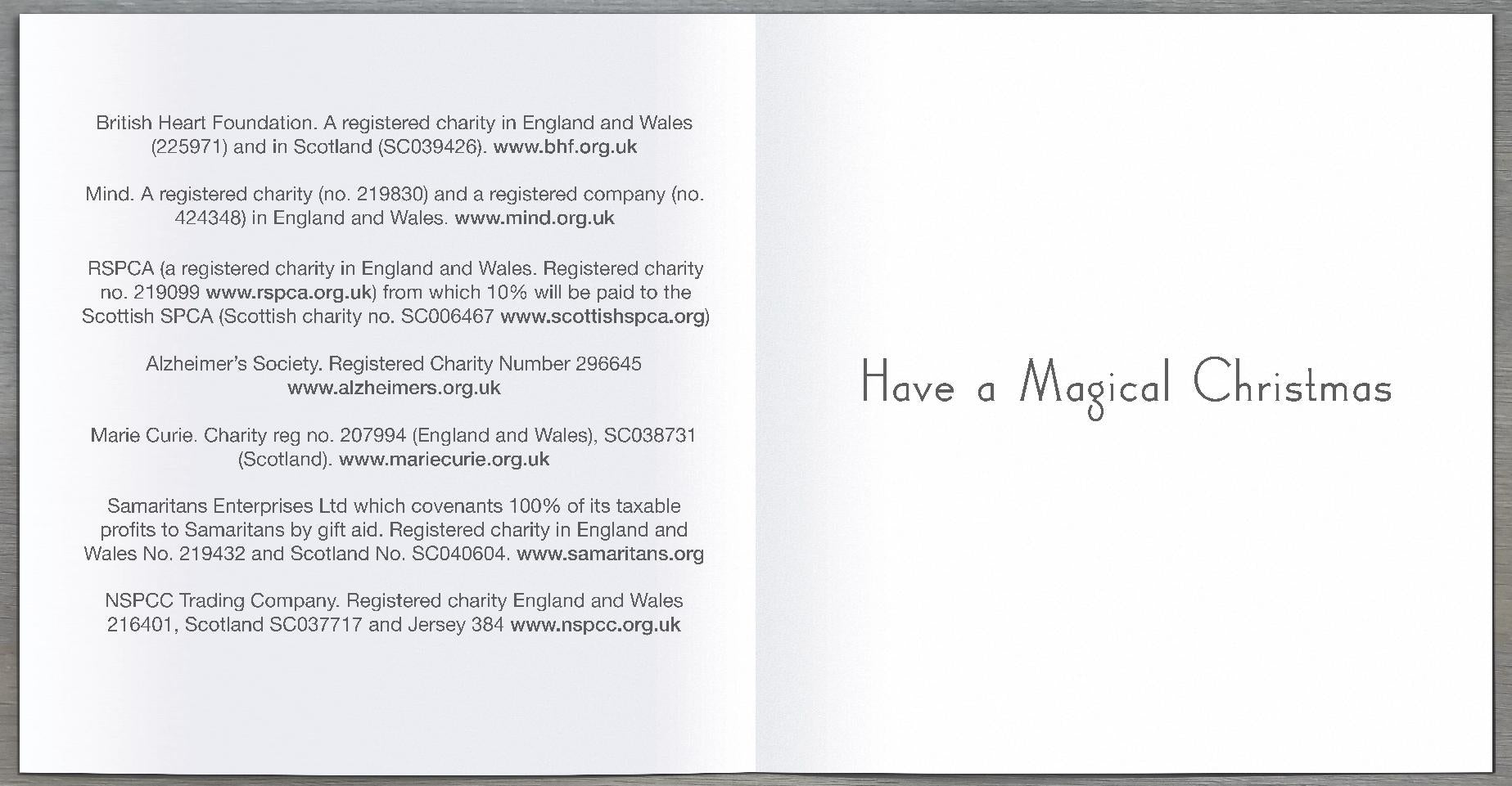 Details: Inside each cube of Christmas cards are 30 mini cards in 4 designs and every purchase includes a charity donation of 35p per pack divided equally between the Samaritans, Marie Curie, RSPCA, British Heart Foundation, NSPCC, Alzheimer's Society and Mind