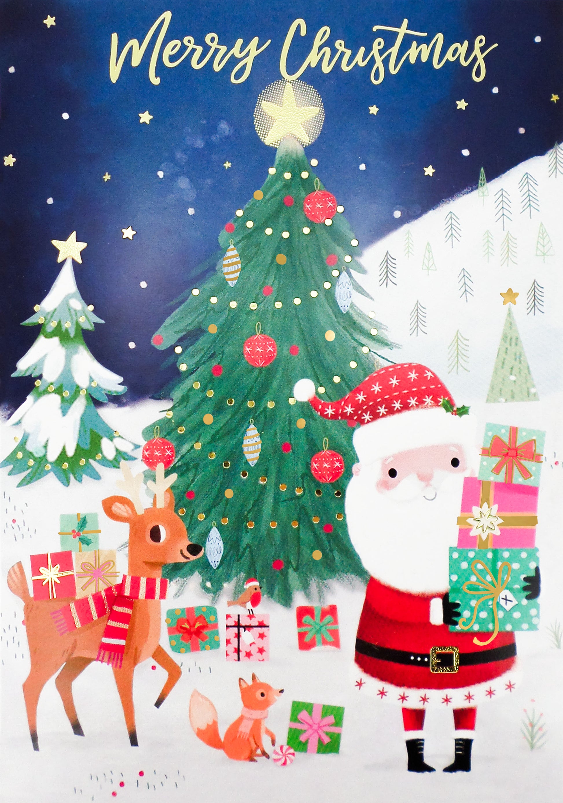 Details: This box of surprise pop up Christmas cards has been thoughtfully designed by Second Nature as part of their Happy Holidays range. Featuring a jolly father Christmas with Rudolph bearing gifts by a Christmas tree with the caption 'Merry Christmas'.