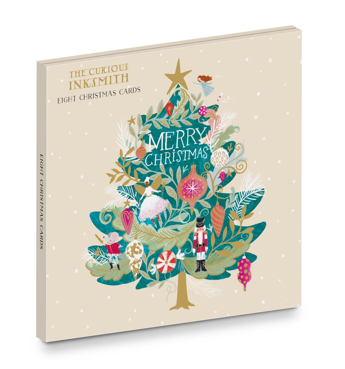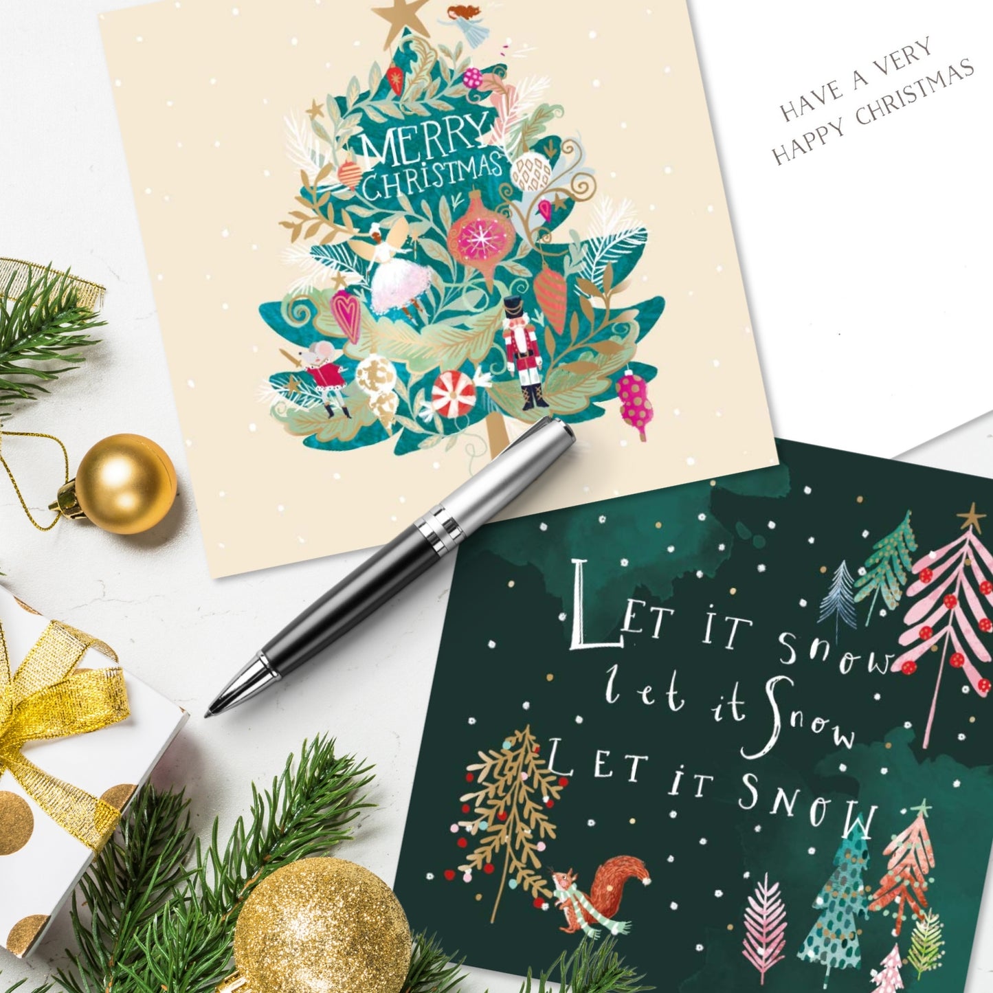 Details: A Box of 8 Christmas cards in 2 designs finished with gold foil detailing from Ling Design's The Curious Inksmith range