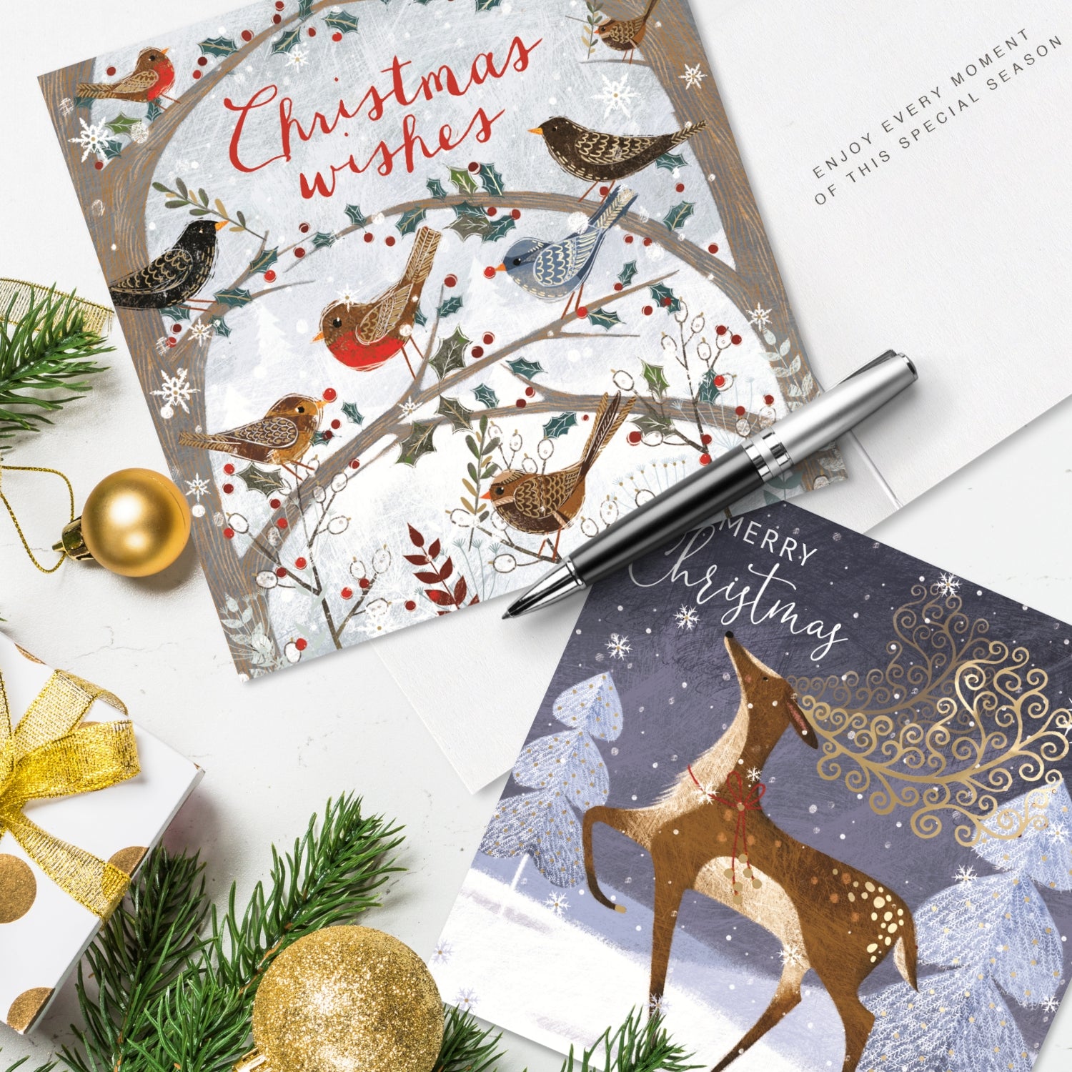 Details: A box of 8 beautifully designed Christmas cards in two designs from Second Nature's Winter Wonderland range