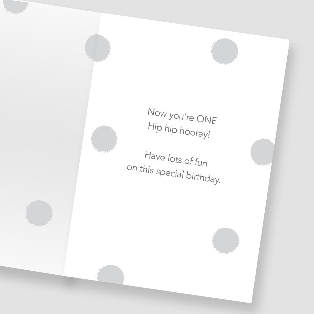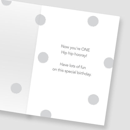 Message: Now you're one hip hip hooray! Have lots of fun on this special birthday.