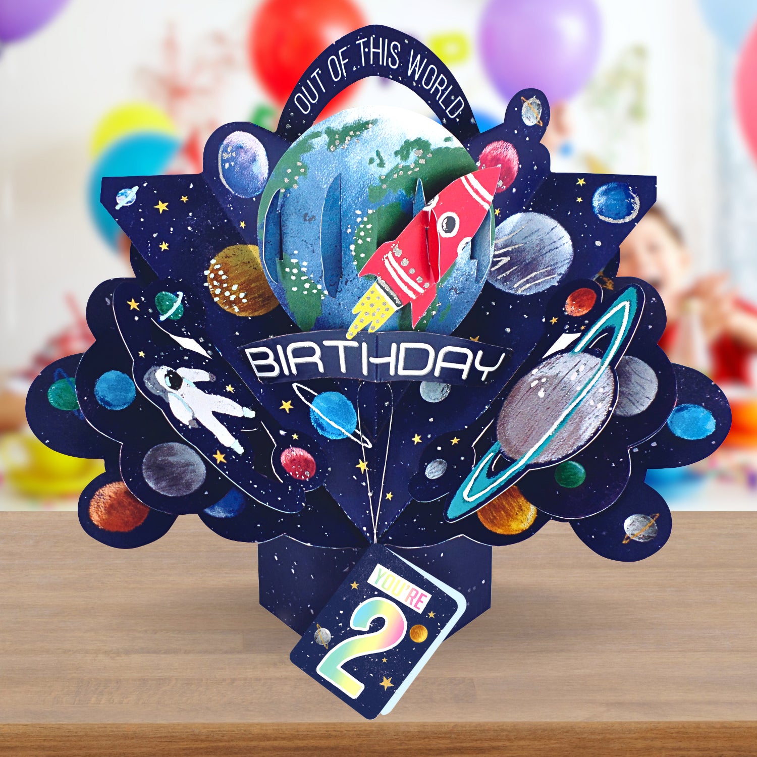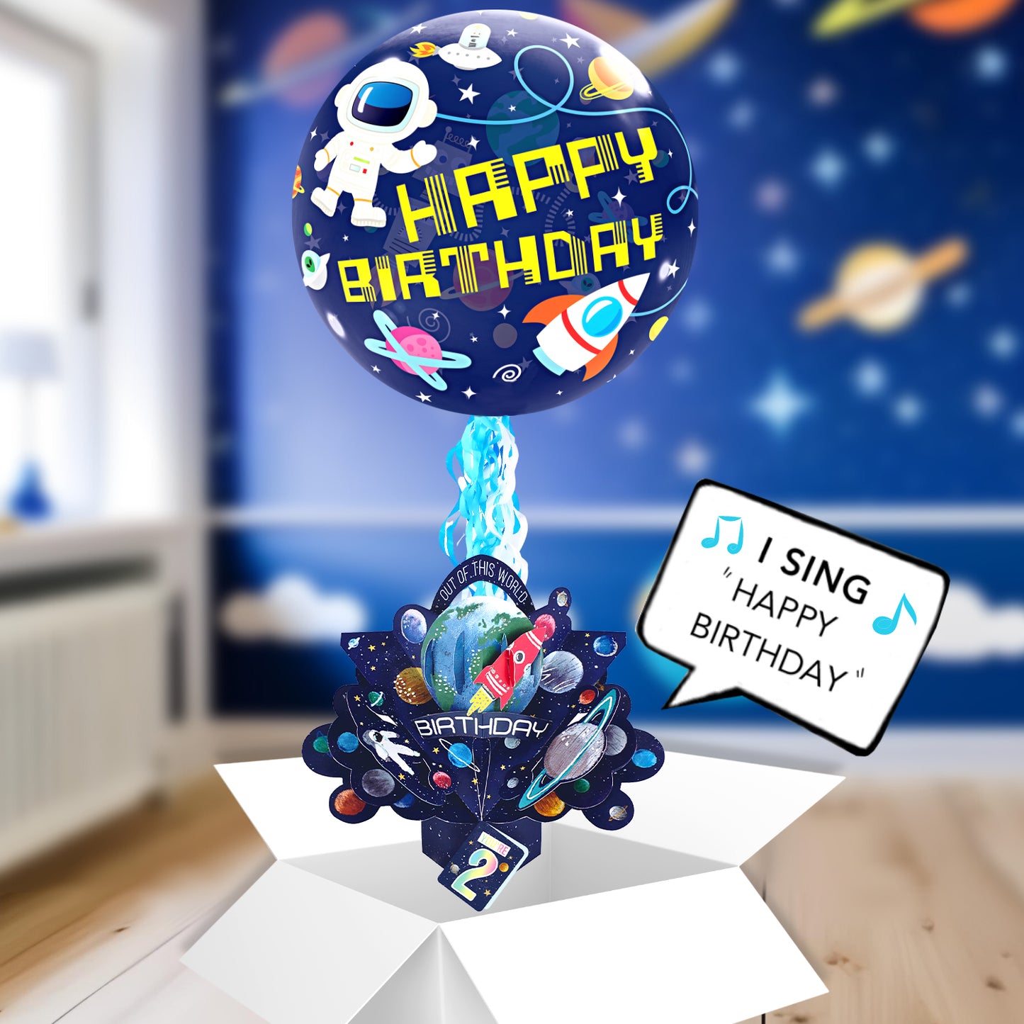 Boys 2nd Birthday Pop Up Card & Floating Balloon In A Box Surprise