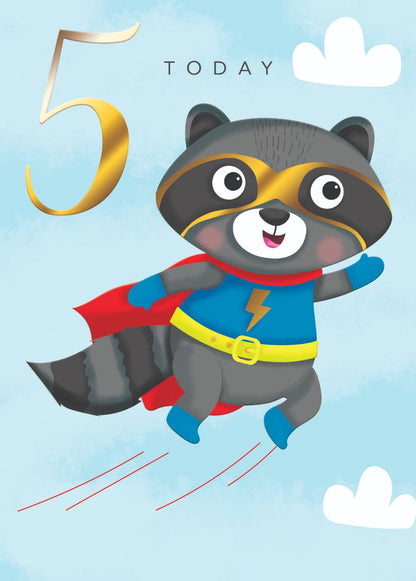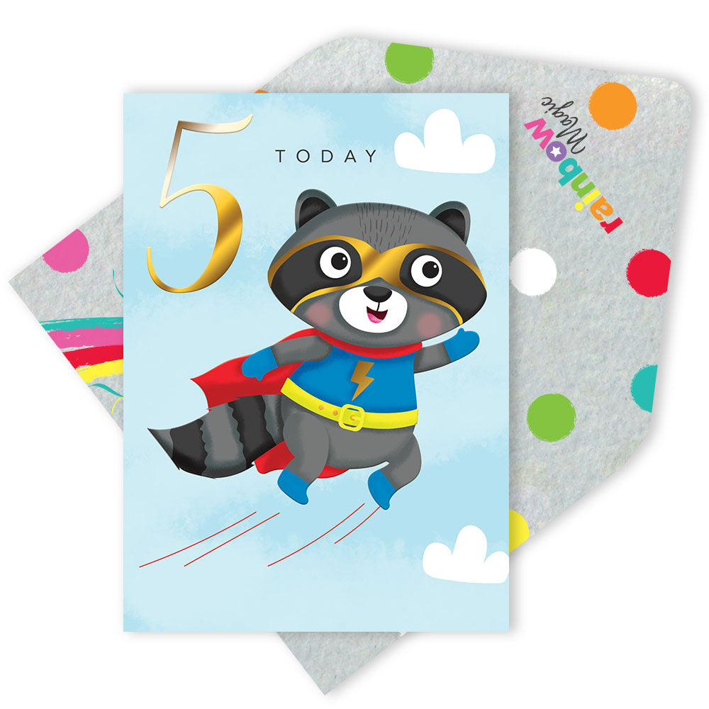 Why they'll love it: Made for a 5 year old who LOVES superhero's, this cartoon raccoon card will surely make him smile on his birthday.