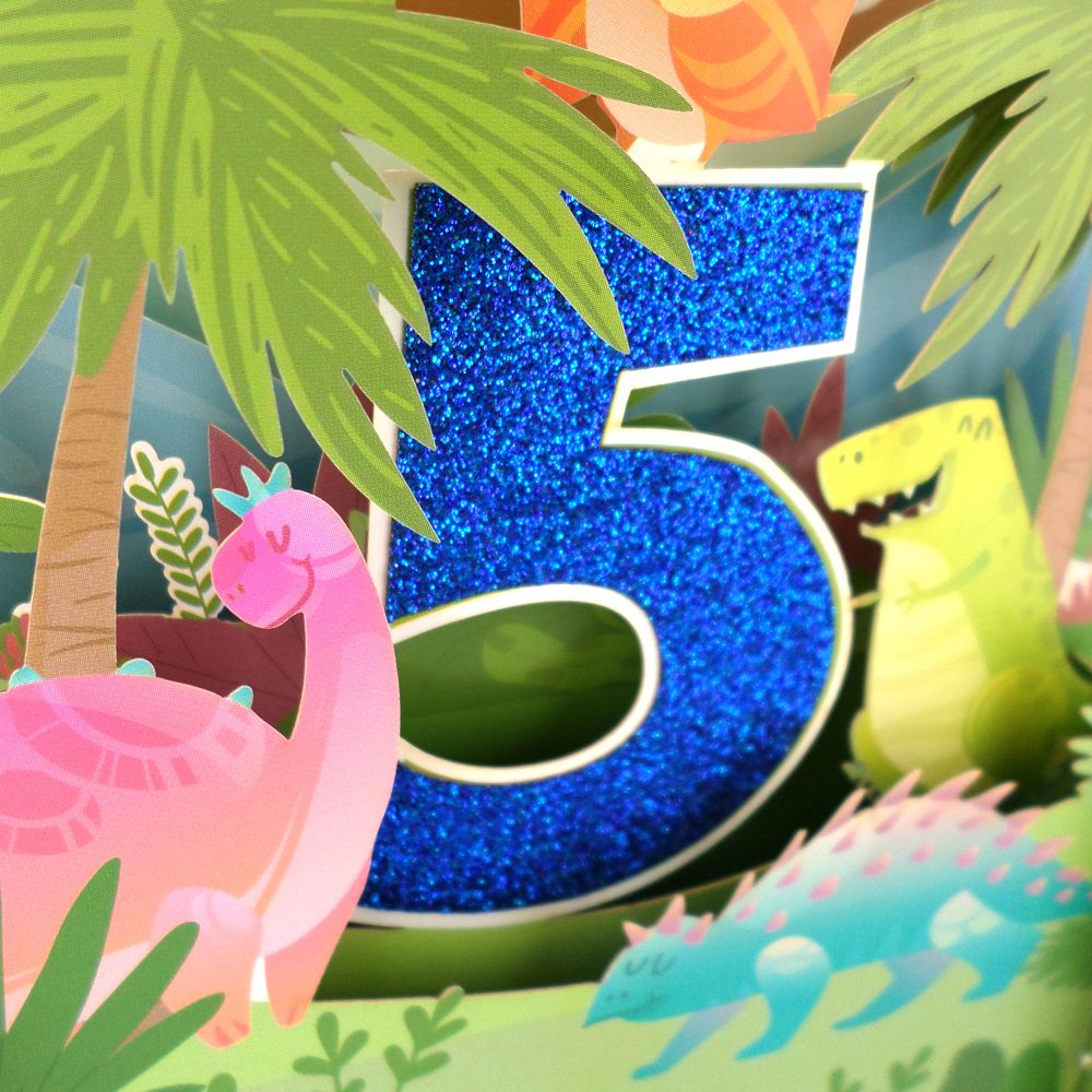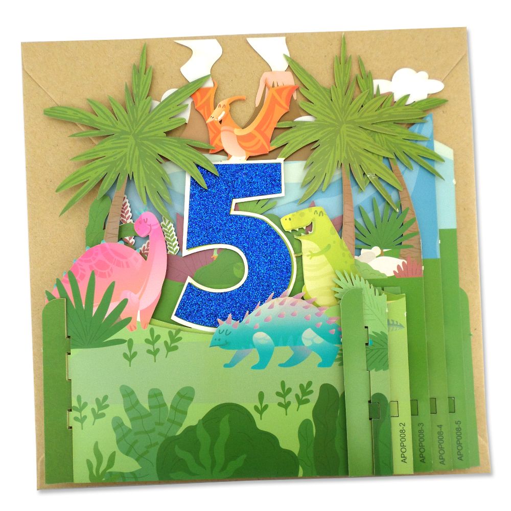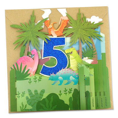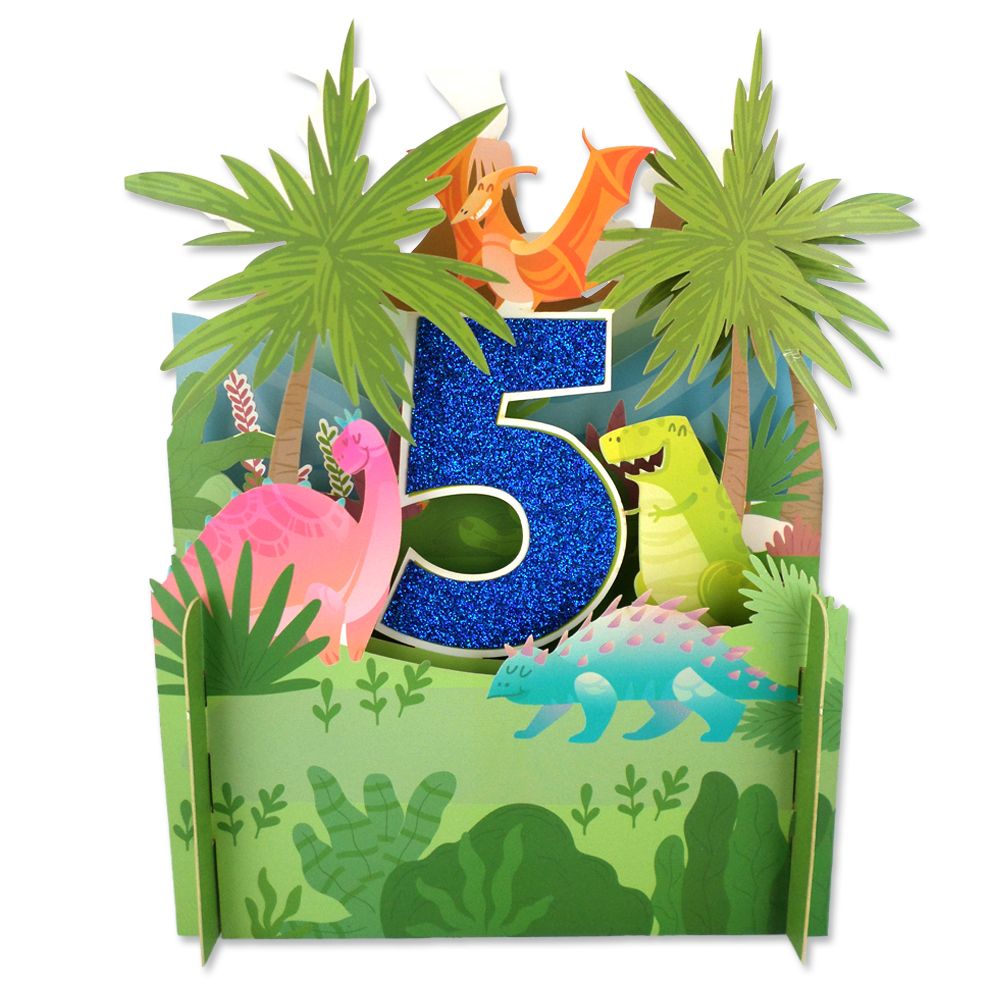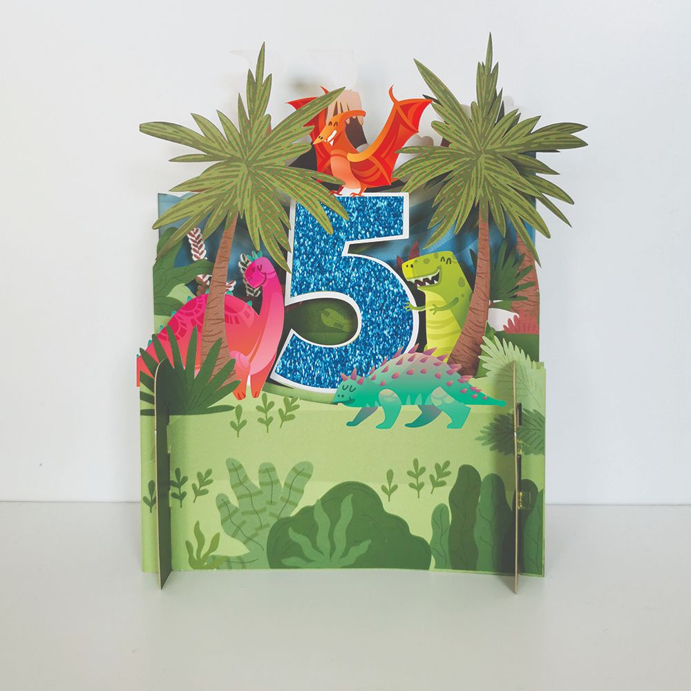 Why they'll love it: Go back in time and walk amongst the dinosaurs with this brilliant pop up 5th birthday card.