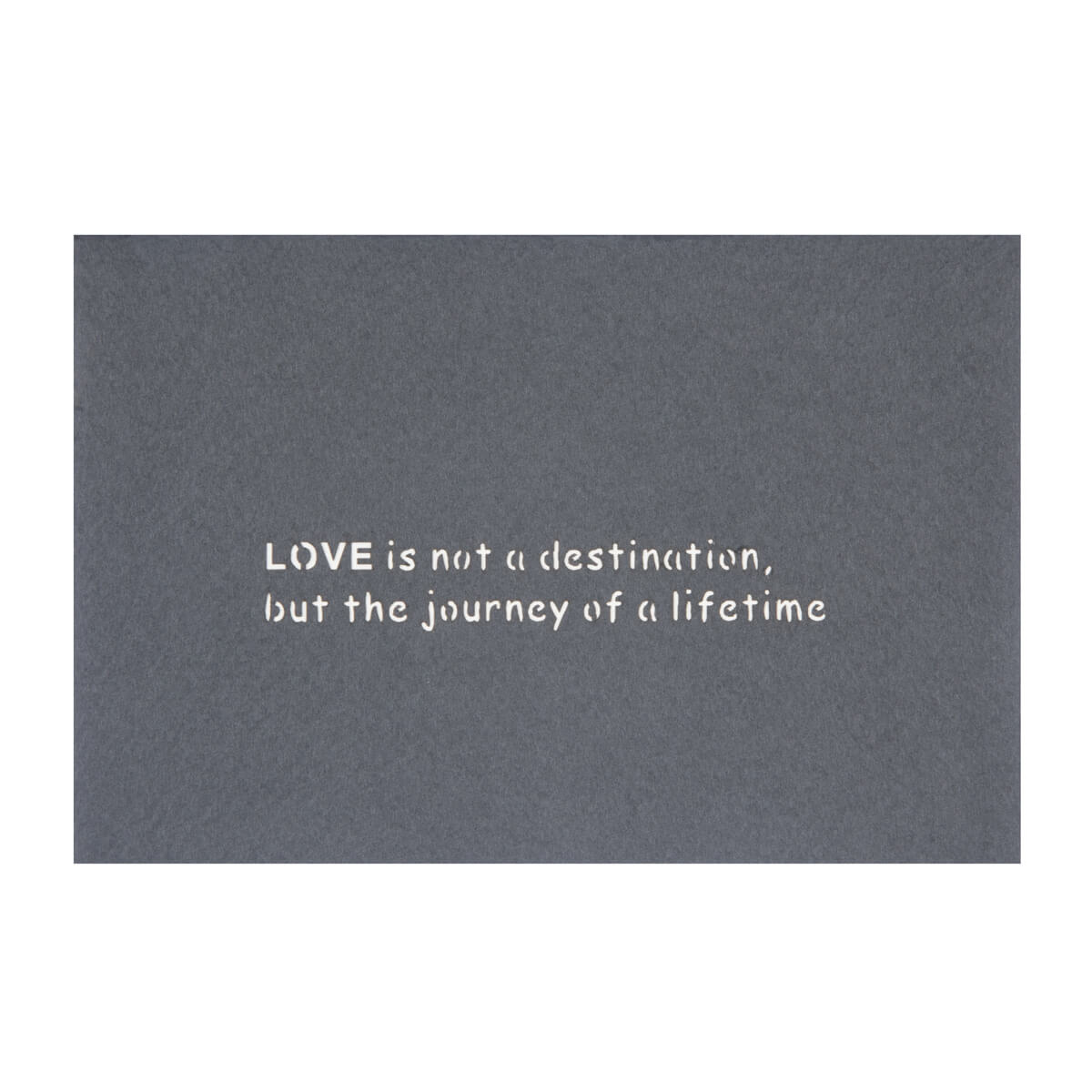Details: It truly is what's inside that counts, each one of these Cardology 3D pop up cards hides a surprise intricate die-cut pop out inside. The Brides Carriage card features a delicate laser-cut design on the front of the card with 'LOVE is not a destination, but the journey of a lifetime' wording and displays a hand-crafted magnificent and gorgeous carriage with brides on the inside once opened. Each card comes flat with an envelope included Closed