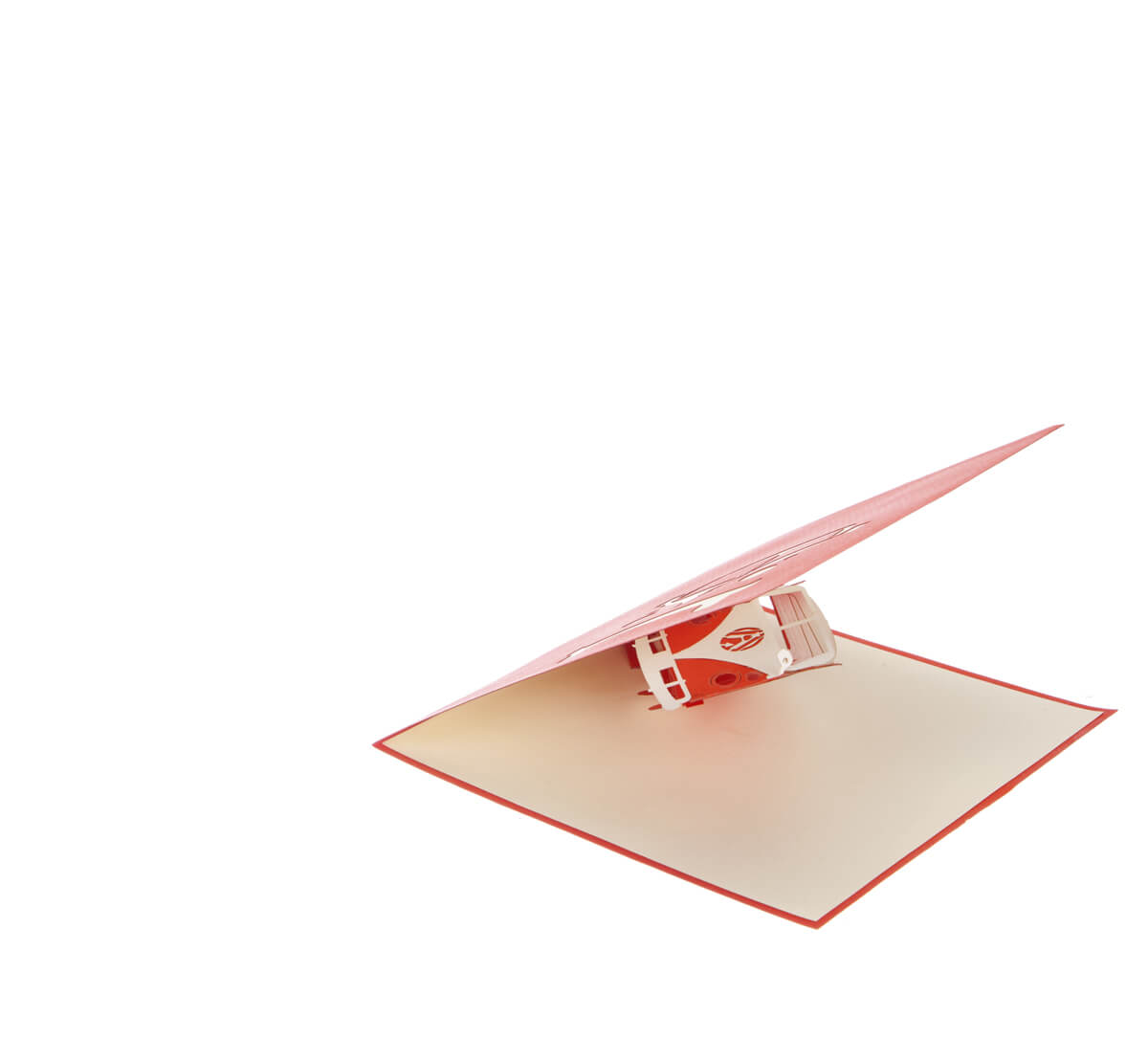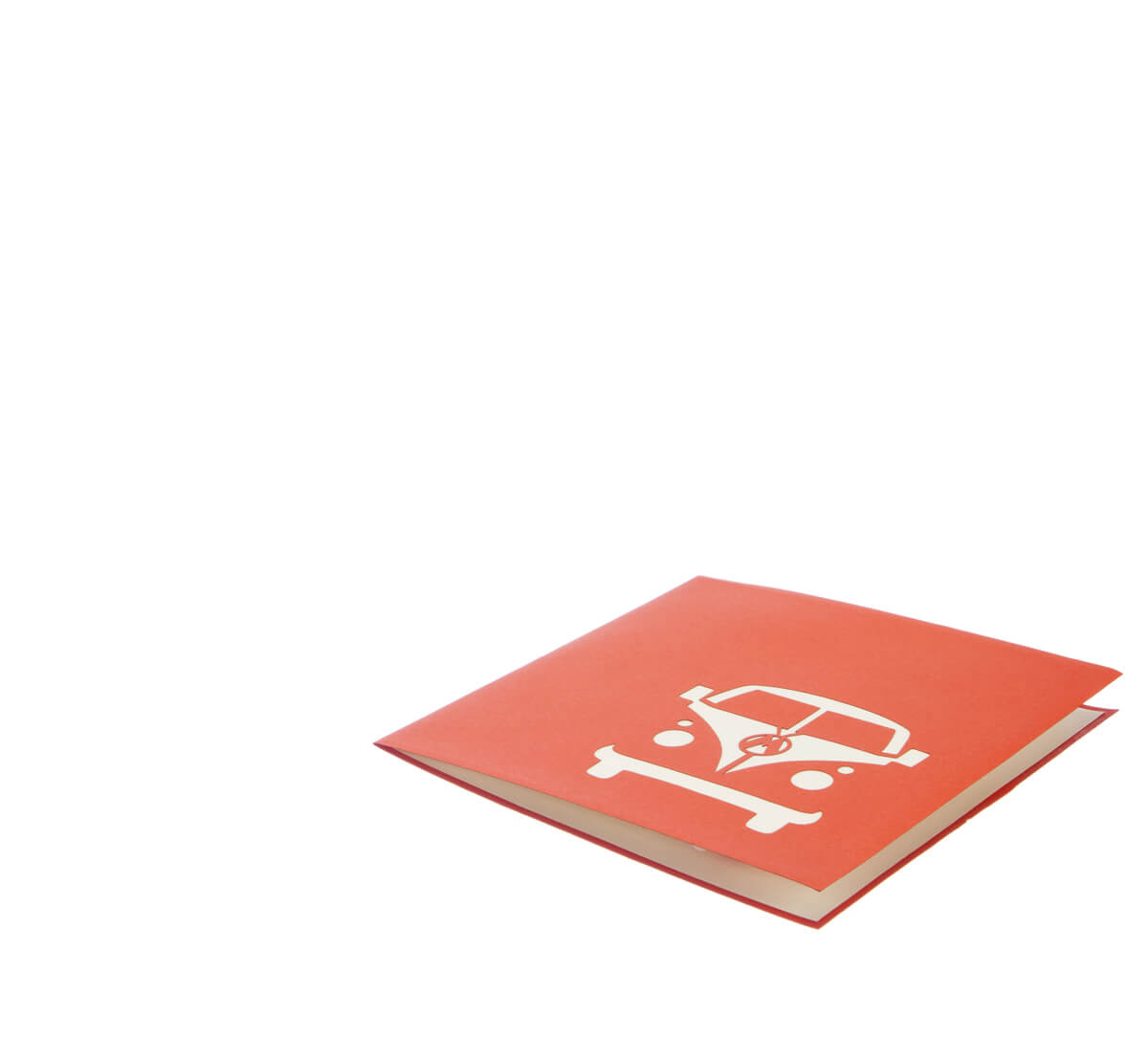 Details: It truly is what's inside that counts, each one of these Cardology 3D pop up cards hides a surprise intricate die-cut pop out inside. The Campervan card features a delicate laser-cut campervan front design on the front of the card and displays a hand-crafted magnificent and gorgeous campervan on the inside once opened. Each card comes flat with an envelope included Closed