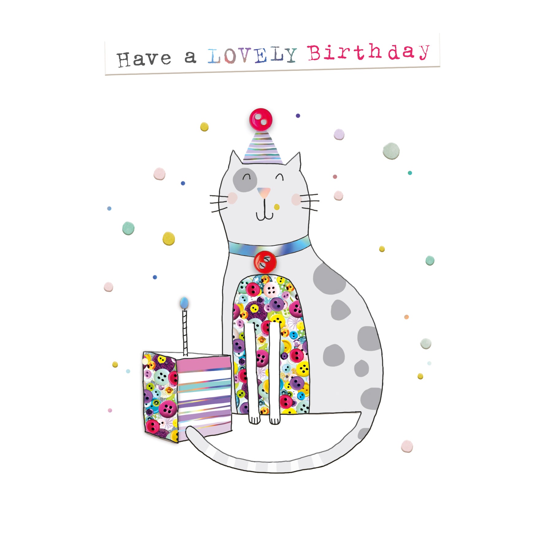Searching for an extra special birthday card for her? This specially detailed cat design has been hand-finished with button embellishments, transforming it into a keepsake they'll adore!