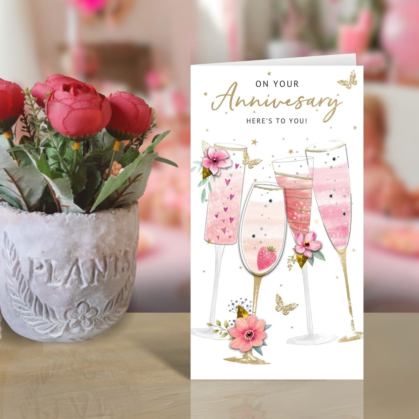 Searching for the perfect card to pair with your anniversary gift? This luxury design is a thoughtful way to raise a toast to a special couple