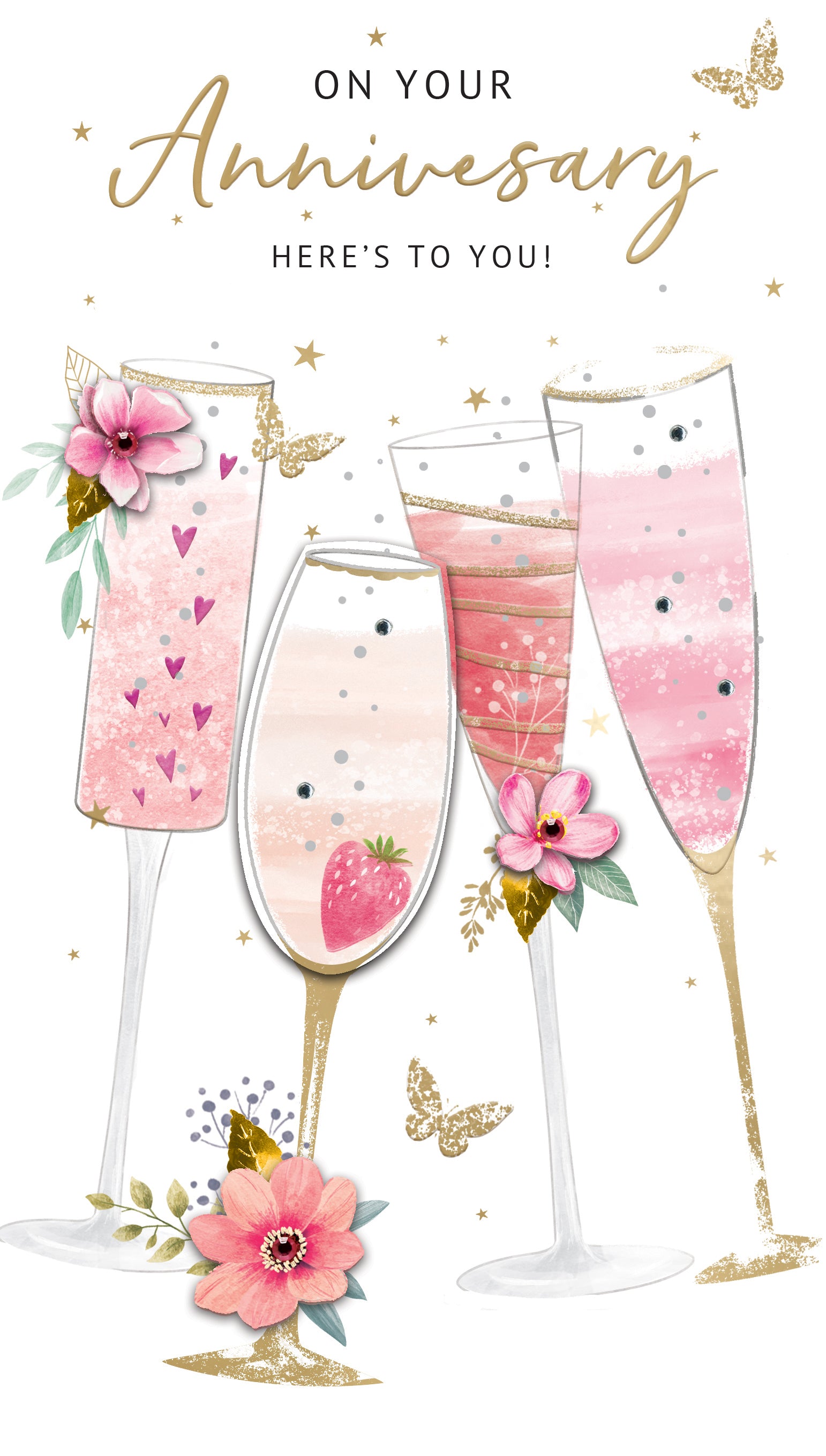Searching for the perfect card to pair with your anniversary gift? This luxury design is a thoughtful way to raise a toast to a special couple