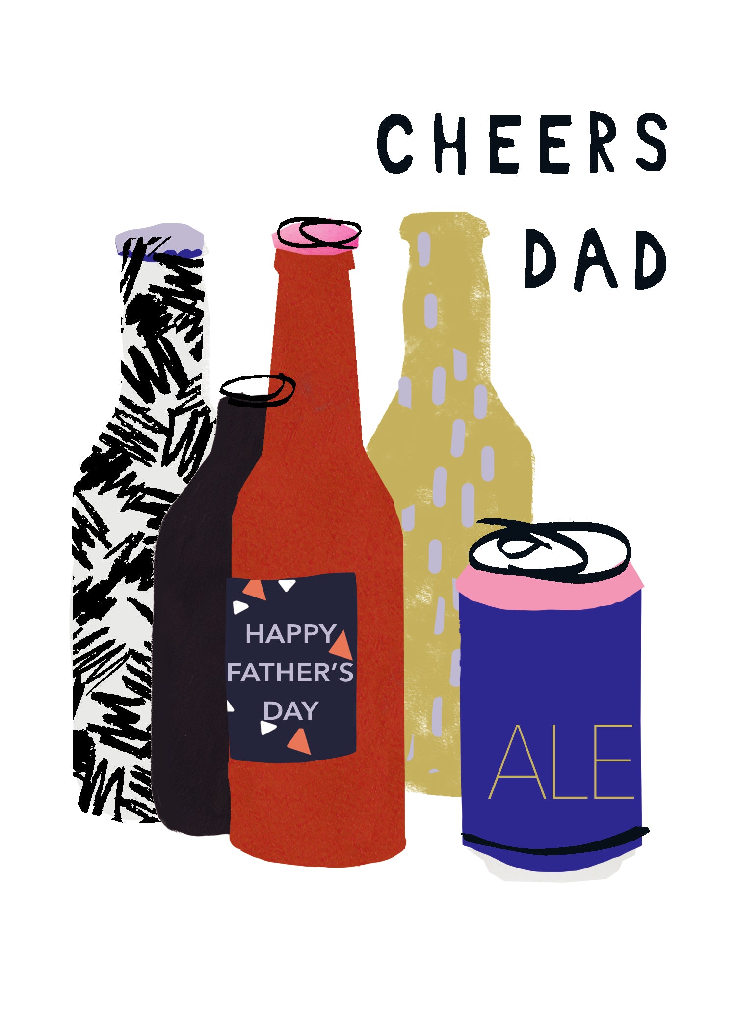 Details: This eco-friendly Contemporary Card has been thoughtfully designed by UK Greetings as part of their Kindred range. Featuring craft beer bottles and tins with the caption 'CHEERS DAD', this unwrapped card is bound to make a special Dad feel happy.