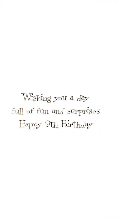 Message Inside: Wishing you a day full of fun and surprises Happy 9th Birthday