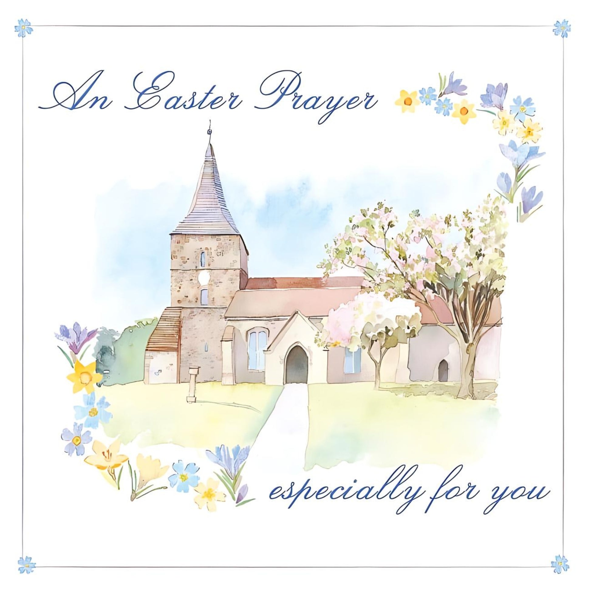 Looking for a meaningful way to share your Easter wishes? This beautifully illustrated card, with its serene church scene and vibrant spring blooms, captures the spirit of the season and creates a heartfelt connection that inspires joy, hope, and Easter blessings.