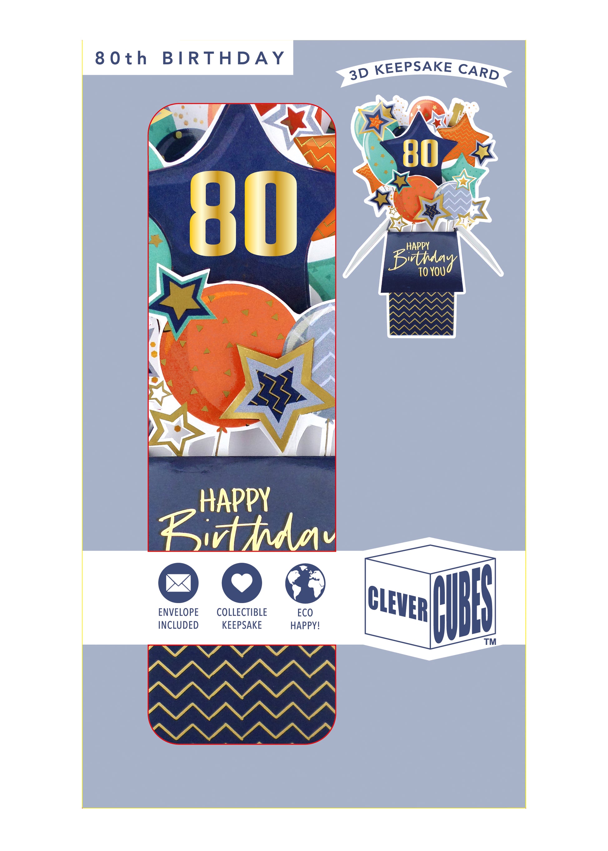 Details: This pop-up birthday card from Second Nature's Clever Cubes range is designed to delight. It features colourful balloons, champagne bottles, and confetti surrounding the caption "80 Happy Birthday to You". It's the perfect way to celebrate a special someone's 80th birthday!