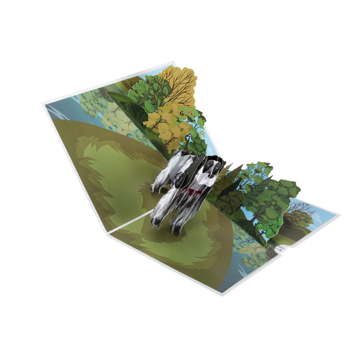 Details: This pop up card from Cardology is a delightful surprise waiting to unfold! Inside, it features a life-like black and white Cocker Spaniel, thoughtfully designed with dog lovers in mind.