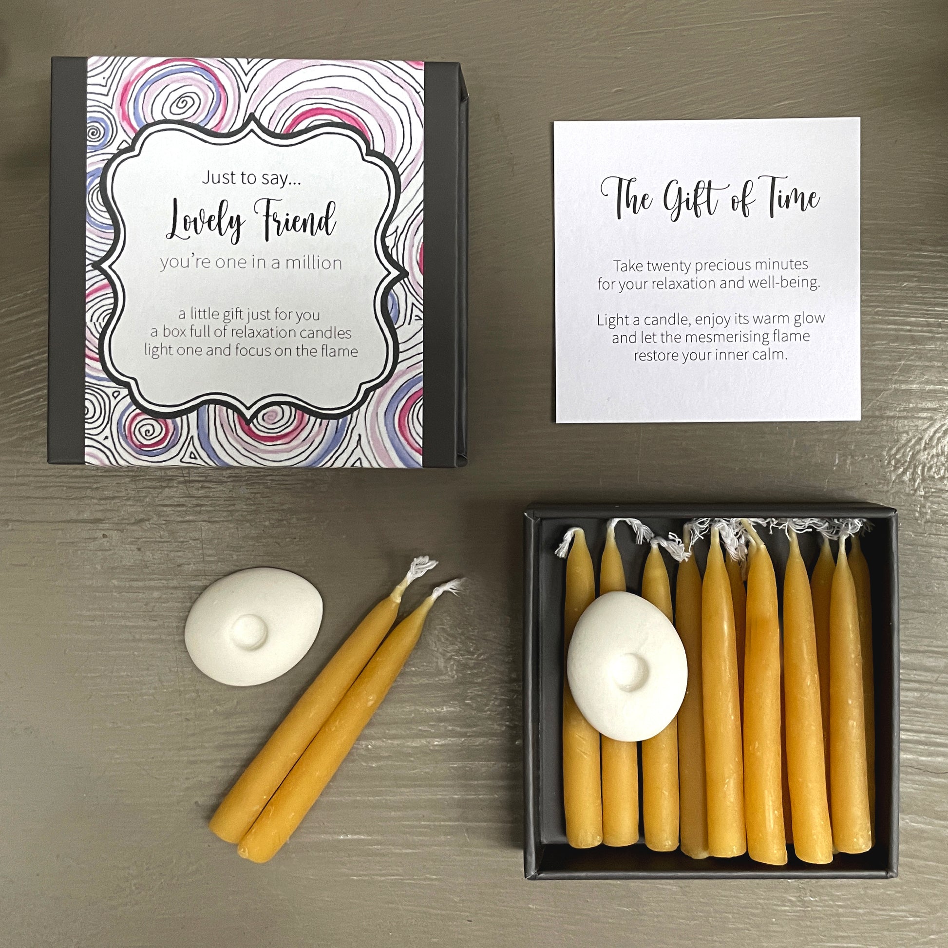 Looking for gift ideas for someone special? This vibrant, relaxing gift featuring candles is the perfect way to show appreciation to a special friend and to capture the joy of your friendship. Surprise your friend with this heartfelt gesture and let them know just how much they mean to you.