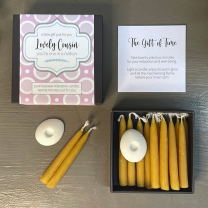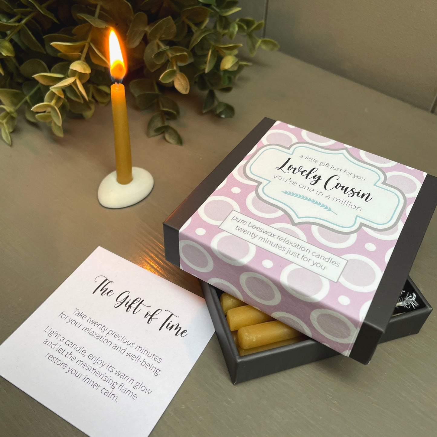 Looking for gift ideas for her? Capture your Cousin's heart with this dainty relaxing gift featuring candles to encourage her to enjoy some relaxation time. A perfect surprise to show her how much you care.