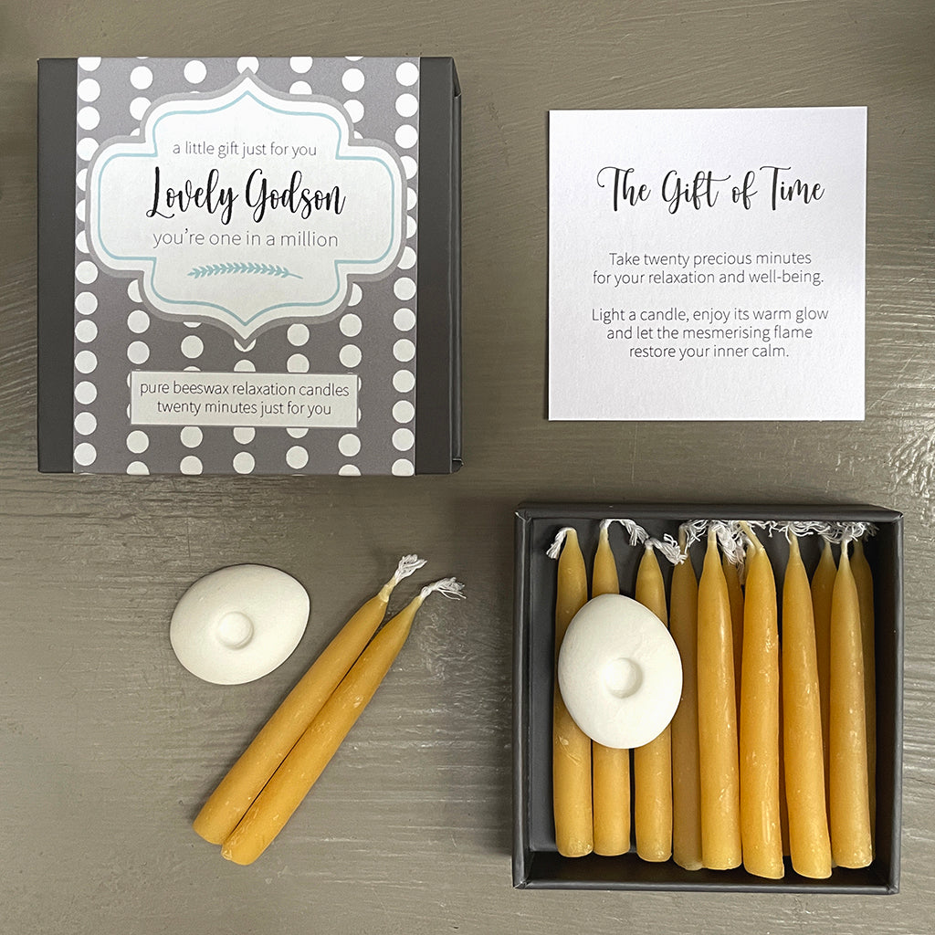 Details: This carefully crafted set of candles from Cotton & Grey is an ideal way to help your beloved Godson unwind and relax. With a variety of candles to choose from, he can enjoy some much-needed "me time" and feel all warm and fuzzy inside. Perfect as a thoughtful gift, he'll love the heartwarming sentiment behind these high-quality beeswax candles.