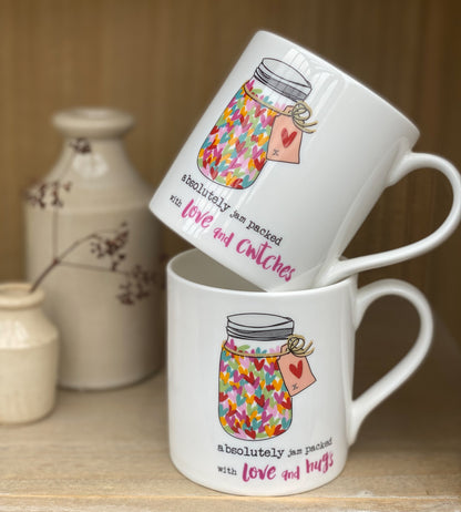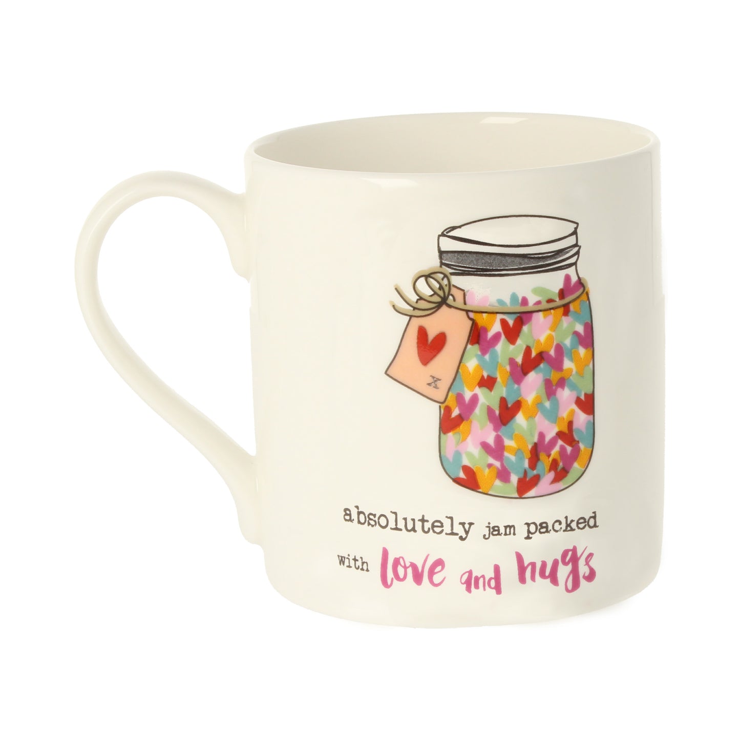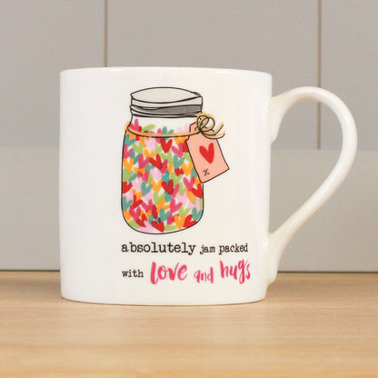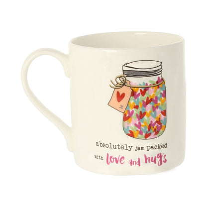 Details: The Dandelion Stationery Love & Hugs Heart Filled Jar Mug is a thoughtful gift idea. The mug design features a jar filled with hearts and the caption "absolutely jam packed with love and hugs." This heartwarming mug is sure to make someone feel loved and appreciated.