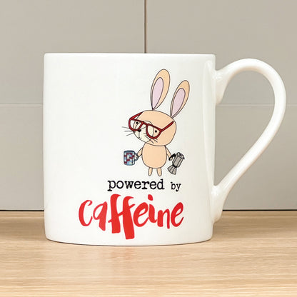 Details: Featuring a cute rabbit sipping coffee with 'powered by caffeine' caption, the Dandelion Stationery mug is designed to delight. Its thoughtful design is ideal for someone special who'd appreciate a fun and quirky gift idea.