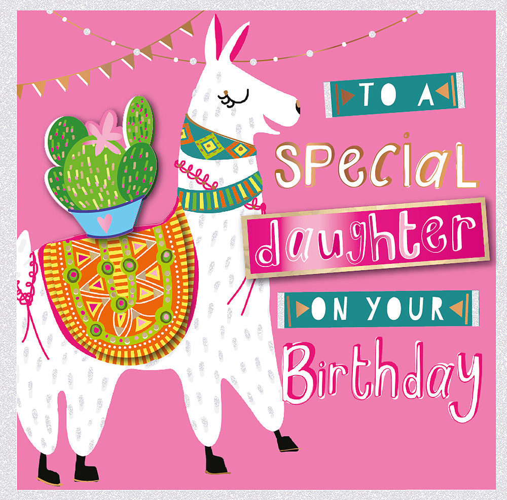 Daughter Embellished Pink Llama Birthday Greeting Card